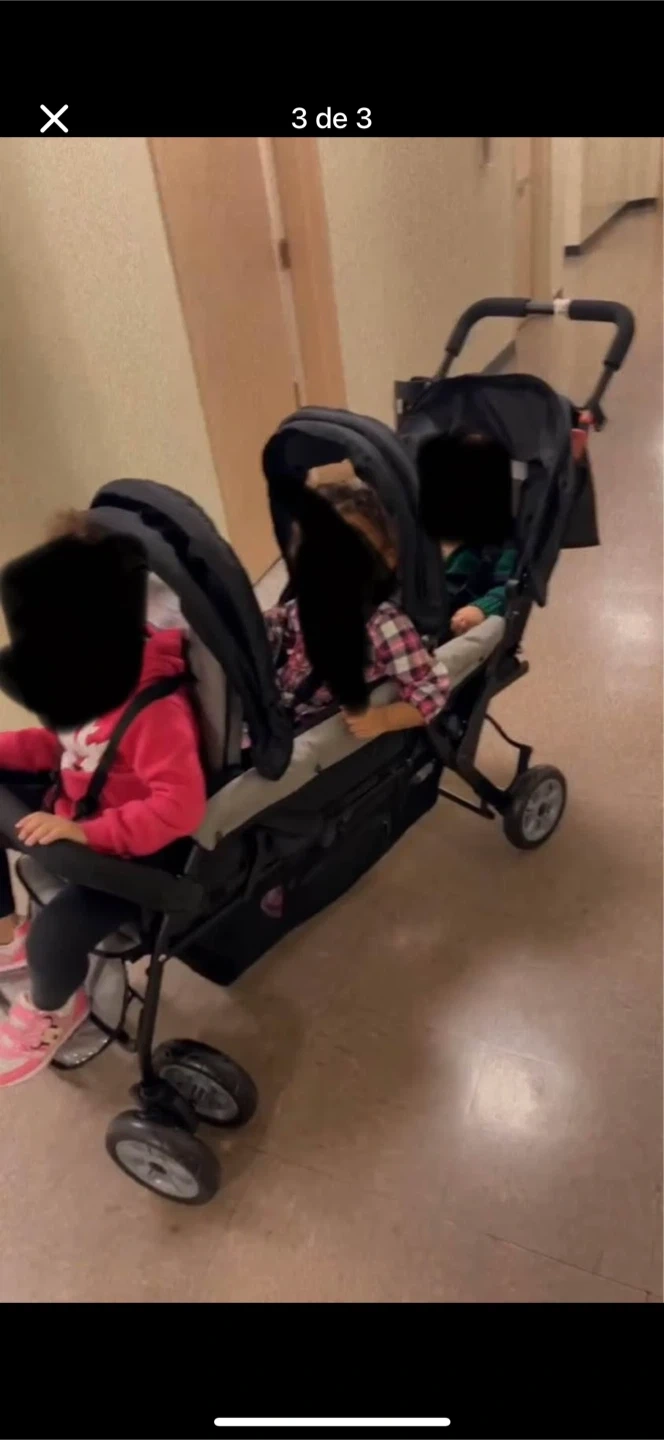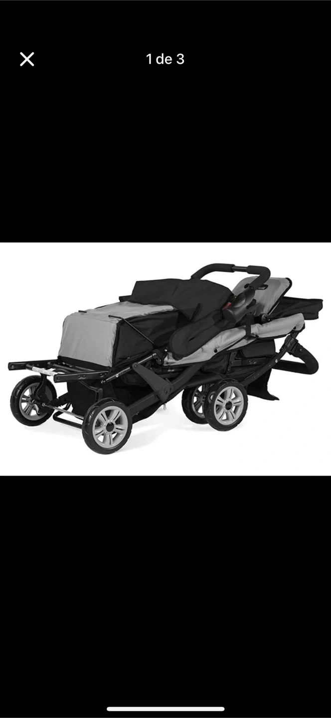 Selling a Gaggle by Foundations Compass triple stroller in black. This stroller has 3 seats with canopies, 5-point harnesses, and a brake.