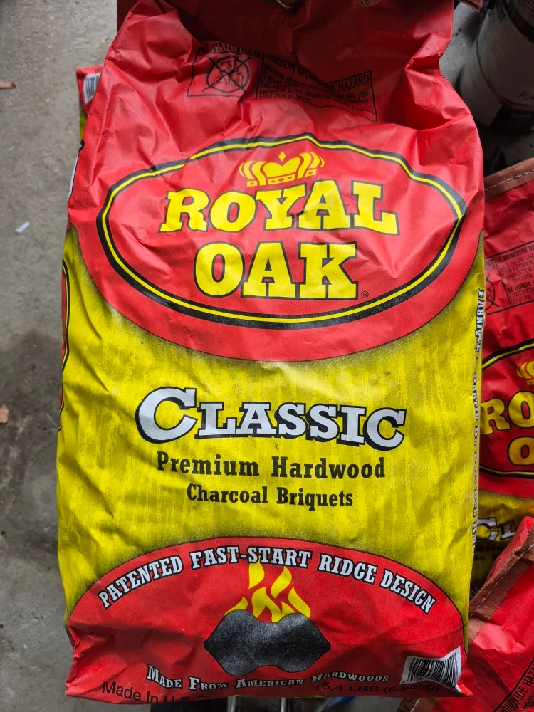 Selling a bag of Royal Oak Classic Premium Hardwood Charcoal Briquets! This bag features a patented fast-start ridge design, making it easy to get your grill going. Contains 15.4 lbs (6.98kg) of American Hardwoods