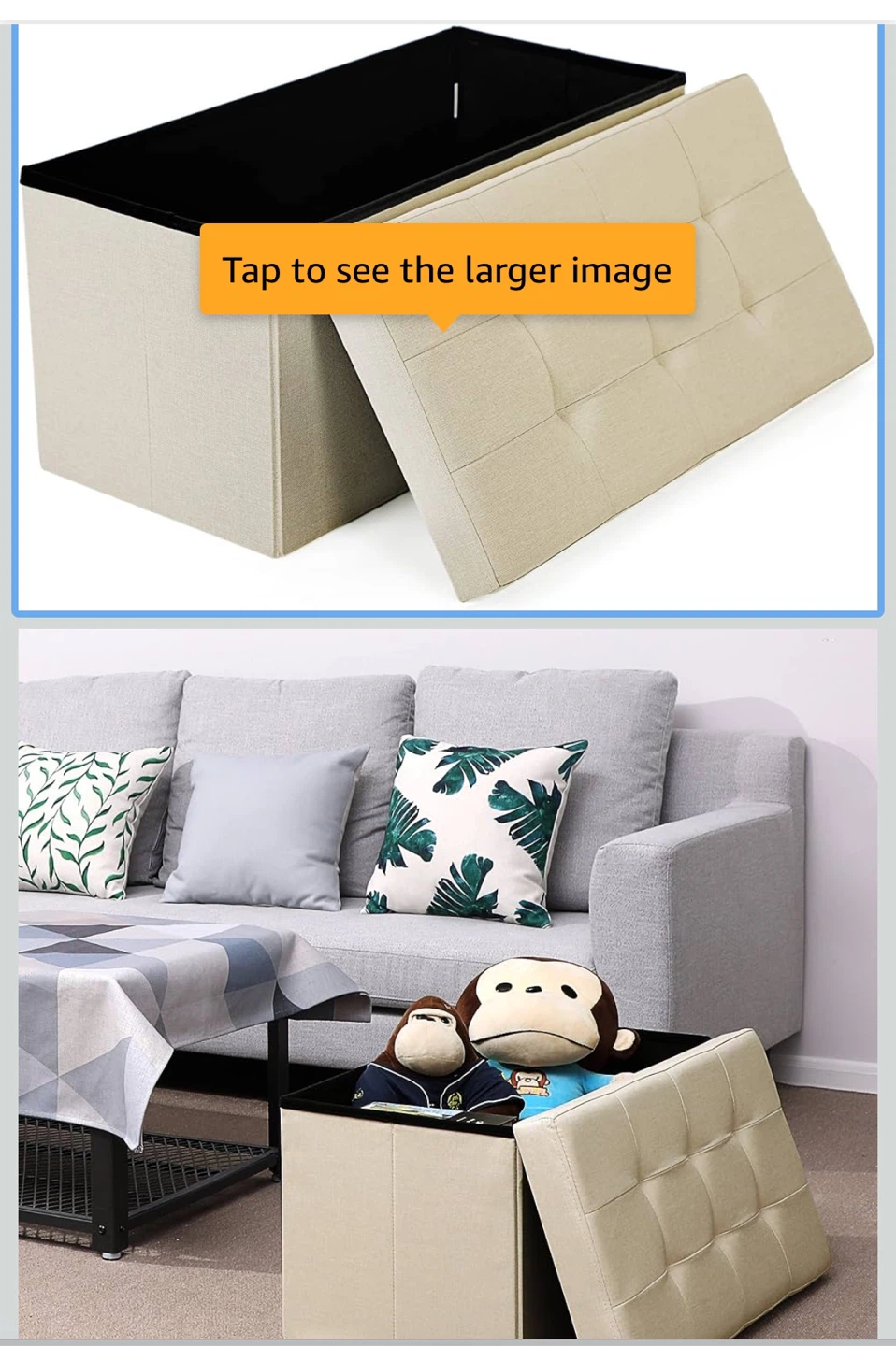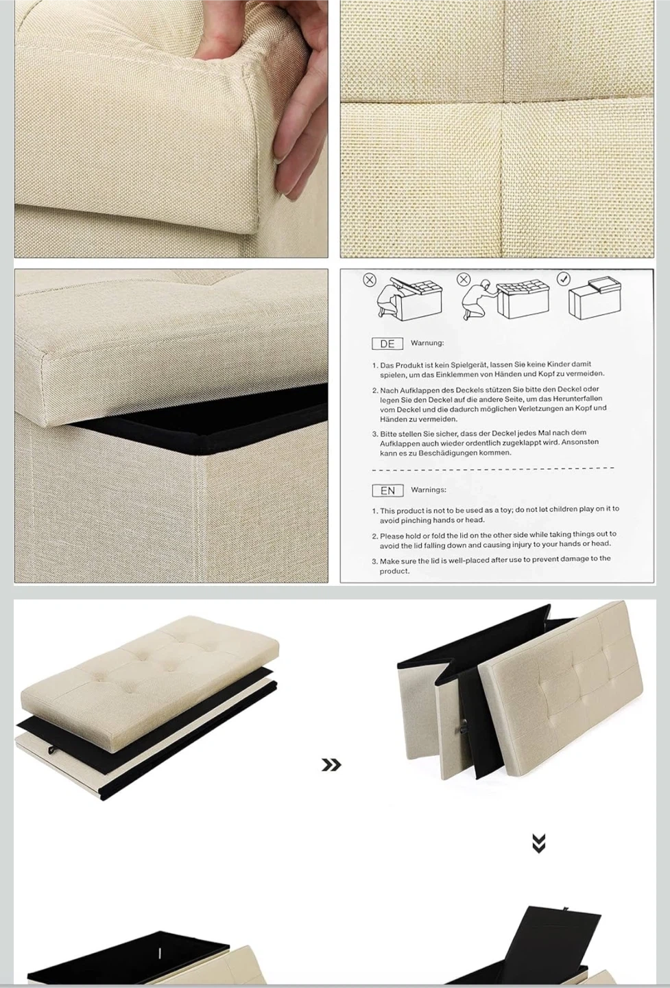 Beige Storage Ottoman Bench