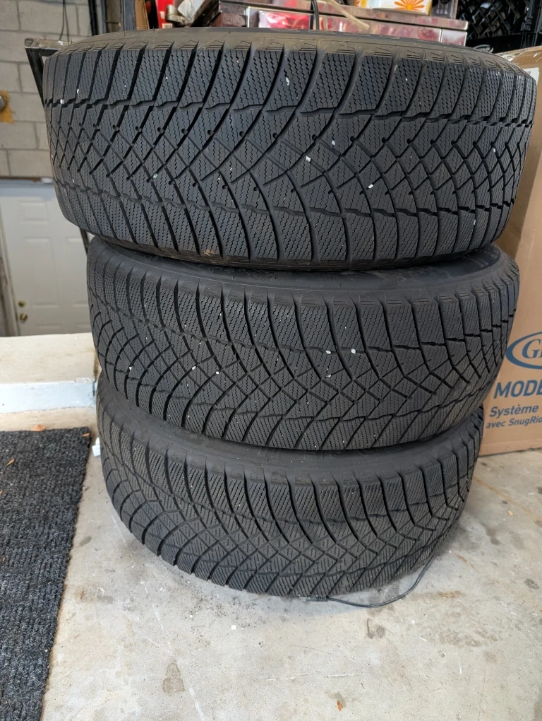 Only used one winter season & driven for approximately 2000 kms. No balancing & alignment required. Ready to install. Fits perfect on ford escape.