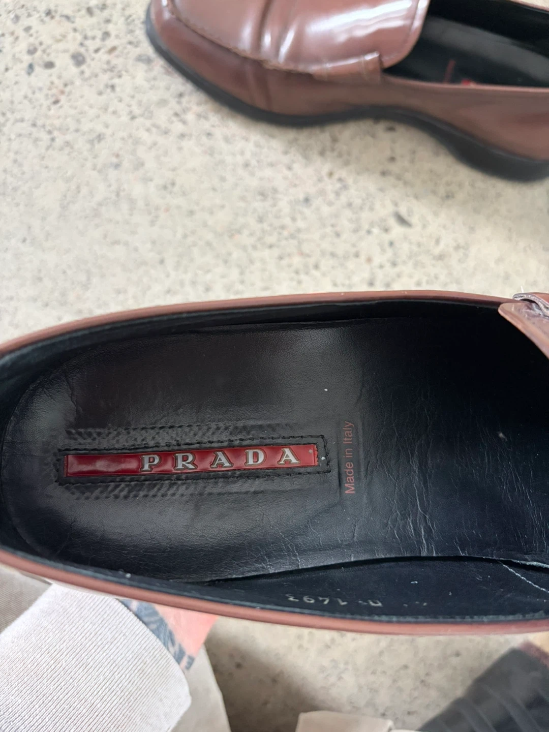 Buy & SellPrada Brown Leather LoafersPrada Brown Leather Loafers$100Prada brown leather loafers Size 9UK, 10US Made in ItalyConditionGoodBrandPradaWHERE TO MEETCheck LocationView MapSELLERverifiedIliaRegent Park973 reviews2 chats·1 favorites·18 views