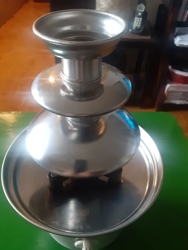 Get ready to add some fun to your next gathering with this chocolate fountain! It's perfect for dipping strawberries, marshmallows, and other treats. It looks to be in great condition and ready to use for your next party or event. Wilton S/S Chocolate Fountains are a premier name both retail and commercial.