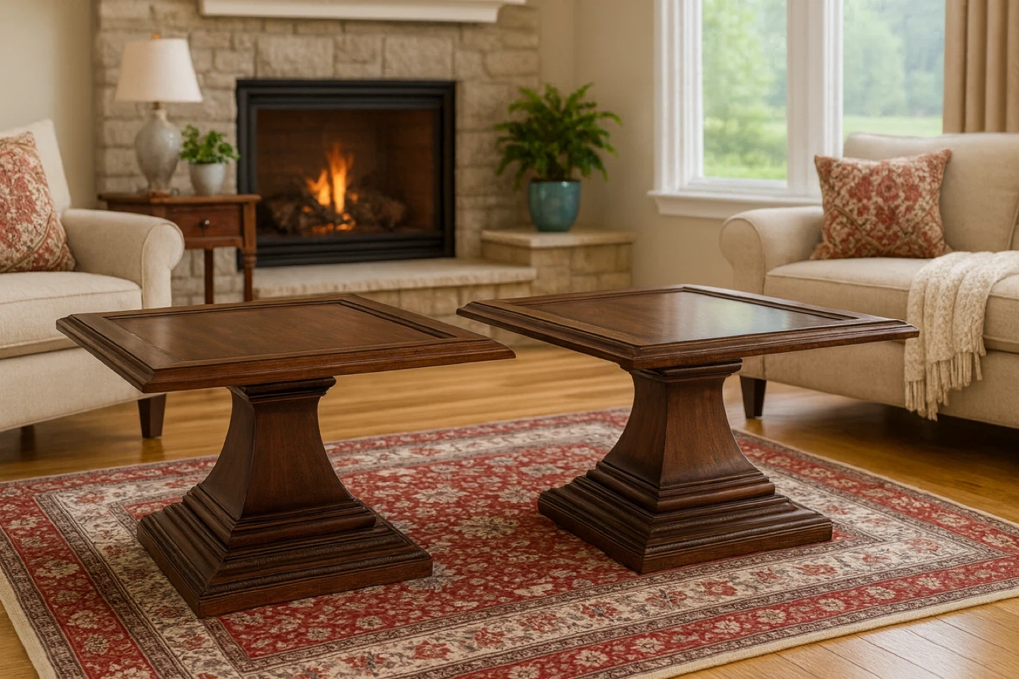 Square Wood Coffee Tables - Set of 2