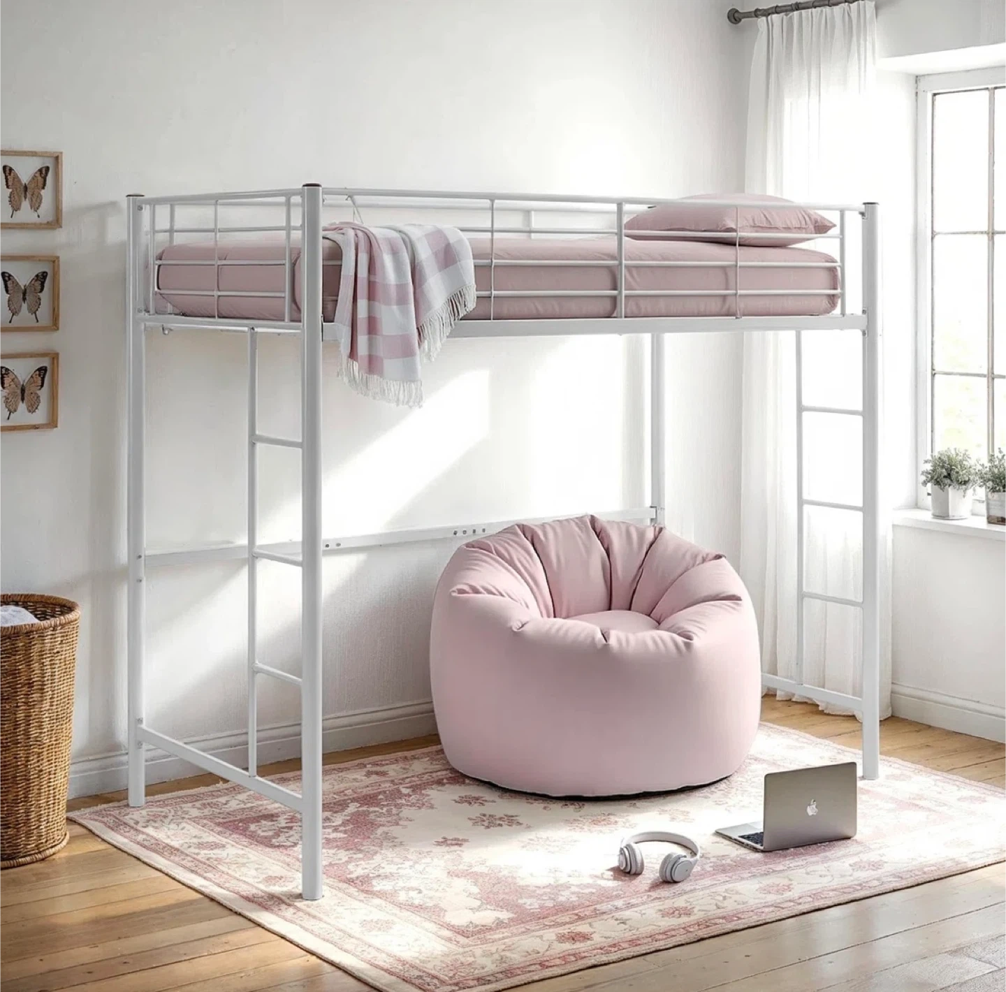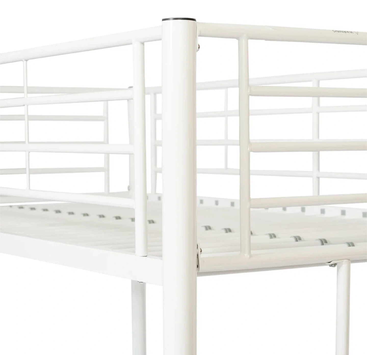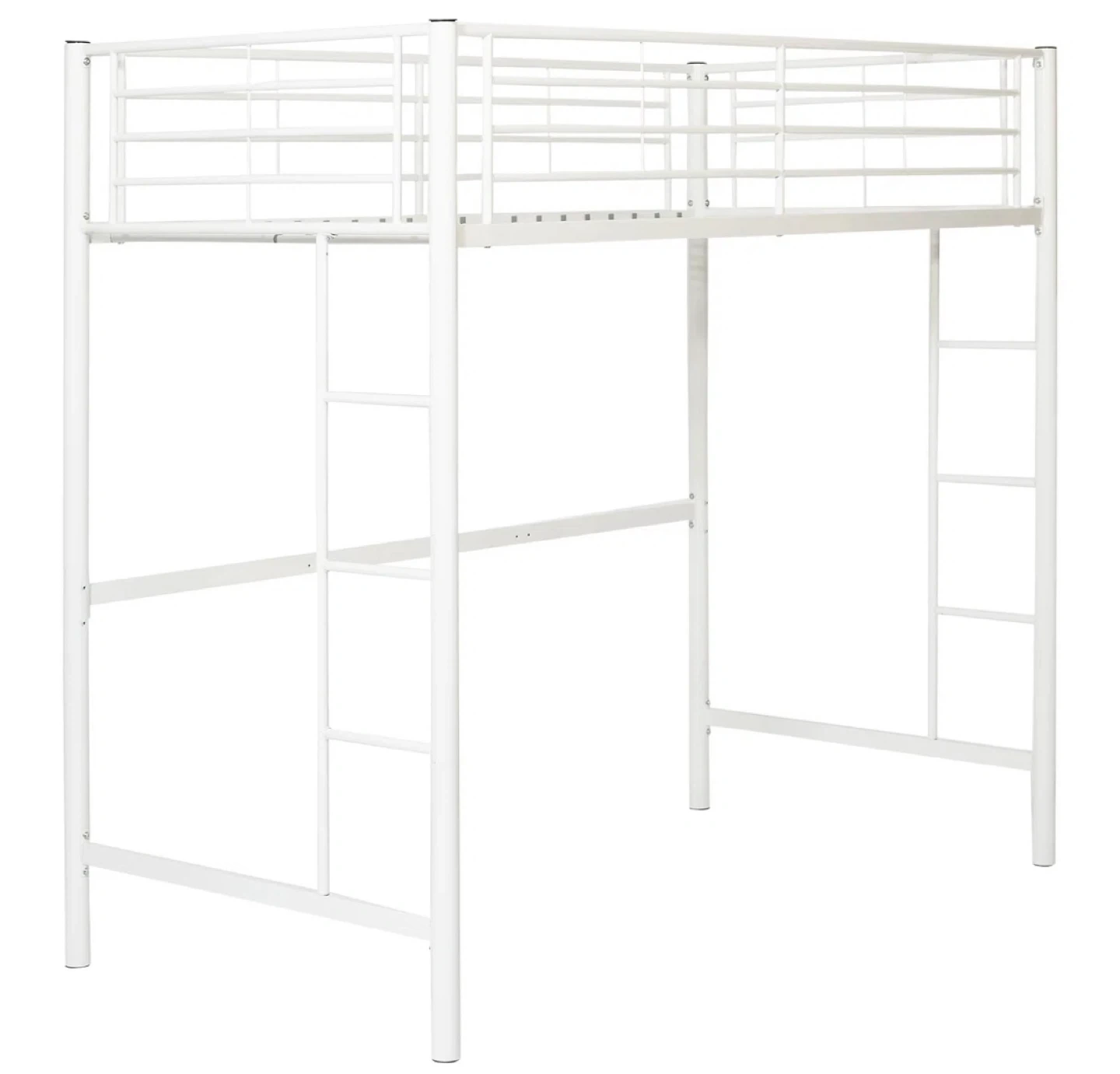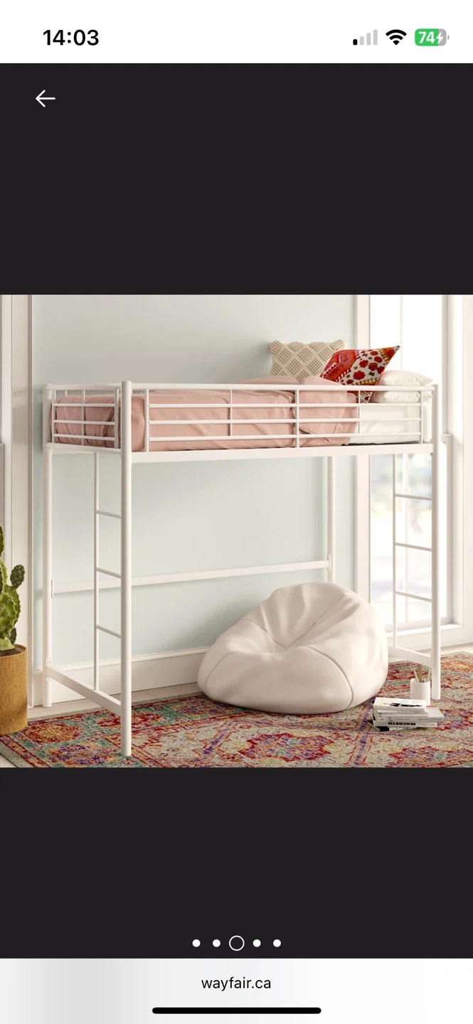 Selling a white metal bunk bed frame! It's in great condition and perfect for saving space in a smaller room or creating a fun, elevated sleeping area. It DOES NOT come with a mattress. Pick up only, cash only.