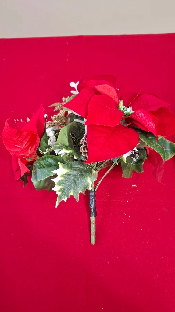 Selling a pair of lovely poinsettia bouquets. Perfect for adding a festive touch to your home this holiday season! Each features red poinsettias, gold accents, and greenery.