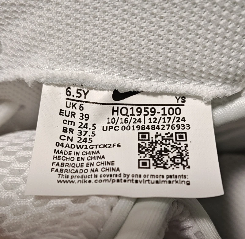 6.5Y / UK 6 / EUR 39 / 24.5cm