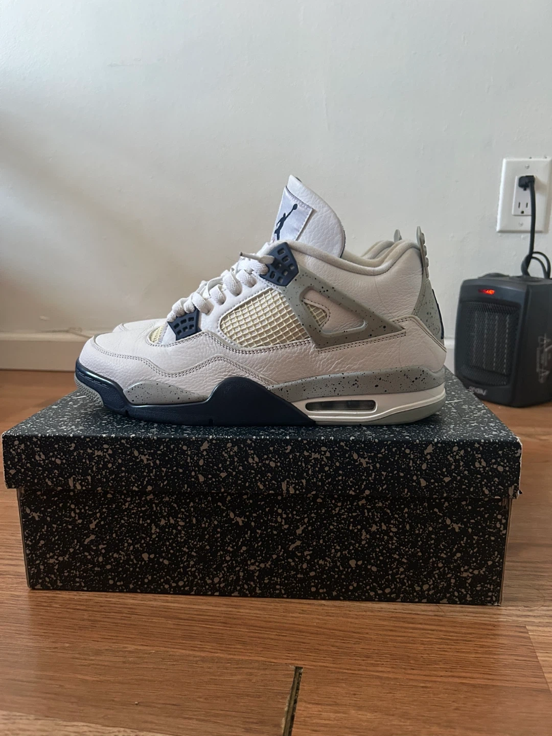 Selling a pair of Air Jordan 4 Retro in the Midnight Navy colorway, size 12. These come with the original box! They are in great condition like literally brand new bought em for 300