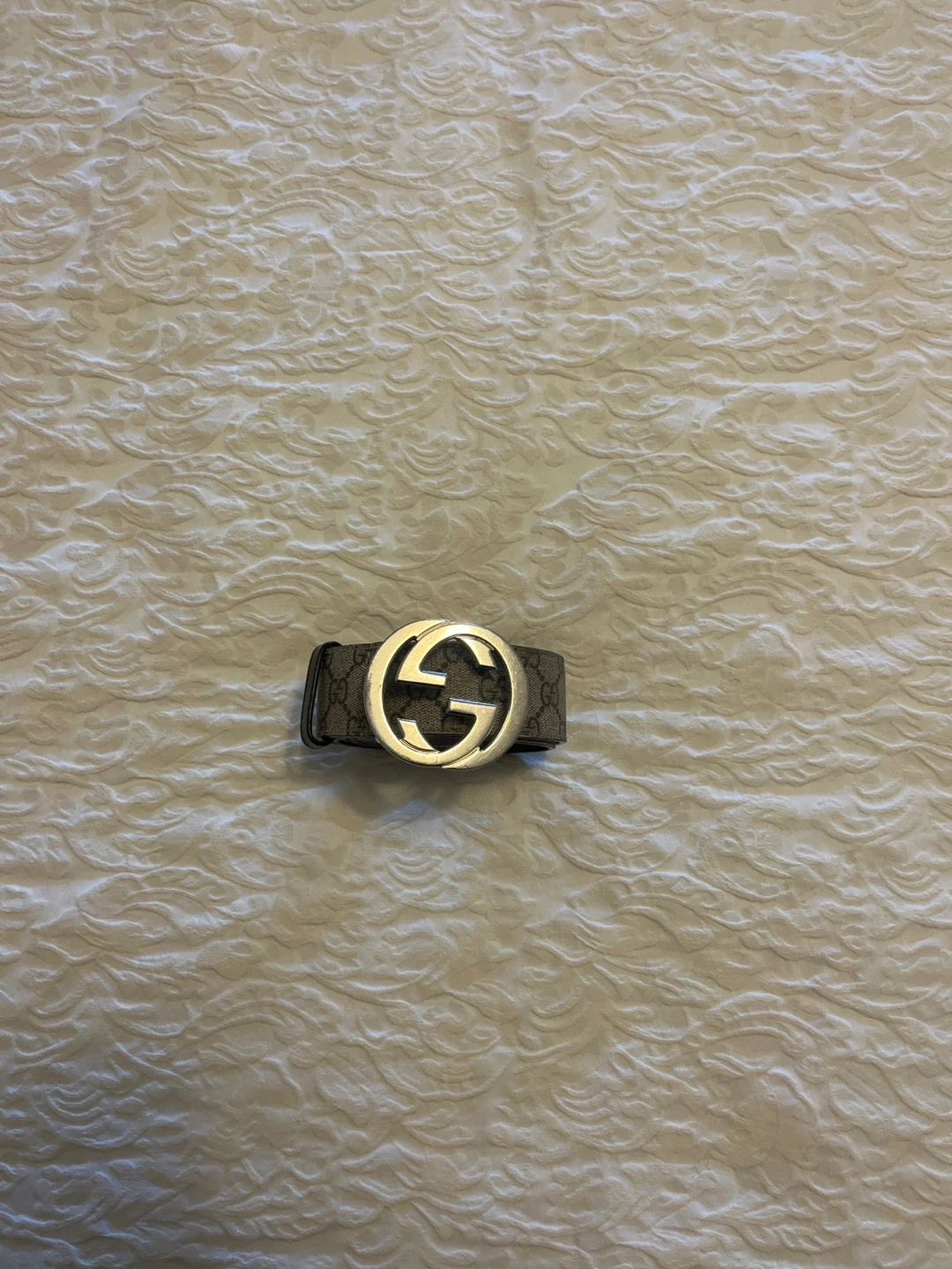 Selling a Gucci belt in great condition. It features the classic Gucci pattern and a silver buckle. A stylish accessory to elevate any outfit!