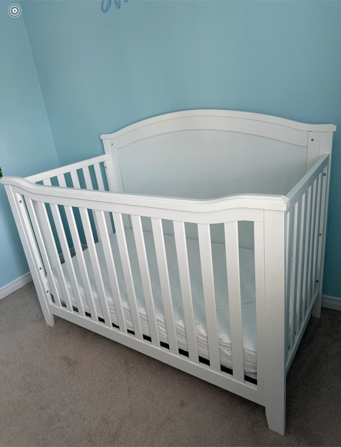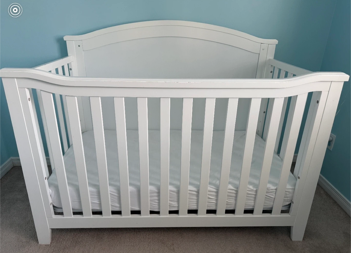 Selling a baby crib in great condition! It's white and ready for a new little one. Perfect for creating a cozy and safe sleeping space for your baby.