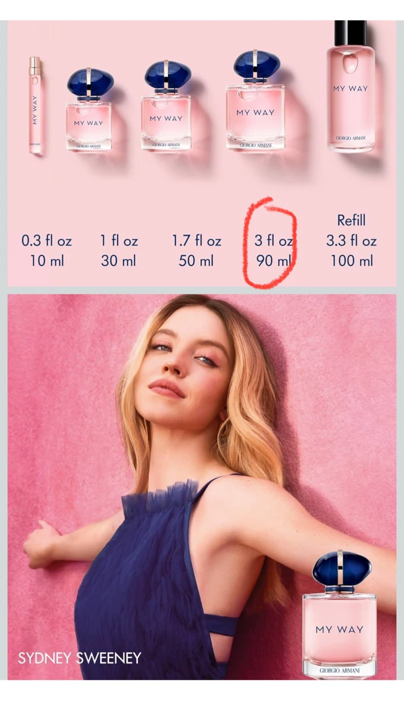Selling a bottle of Giorgio Armani's My Way perfume. It's a lovely fragrance with notes of orange blossom, bergamot, tuberose, jasmine, cedarwood, and vanilla. The bottle contains 3 fl oz (90 ml).