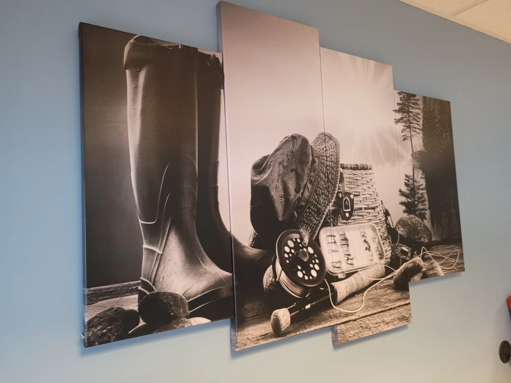 Selling a canvas print wall art piece featuring a fishing theme.