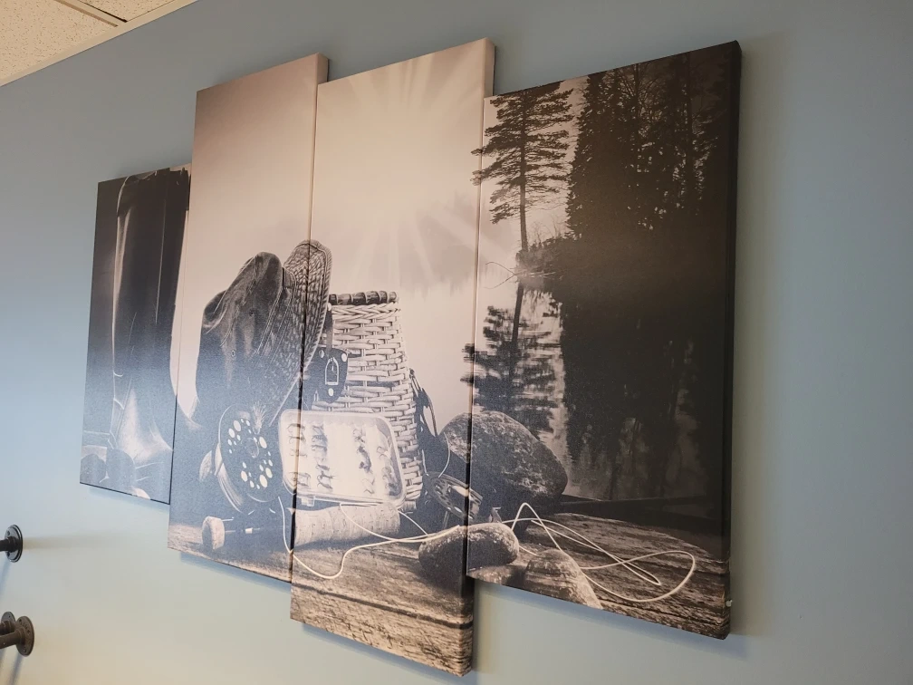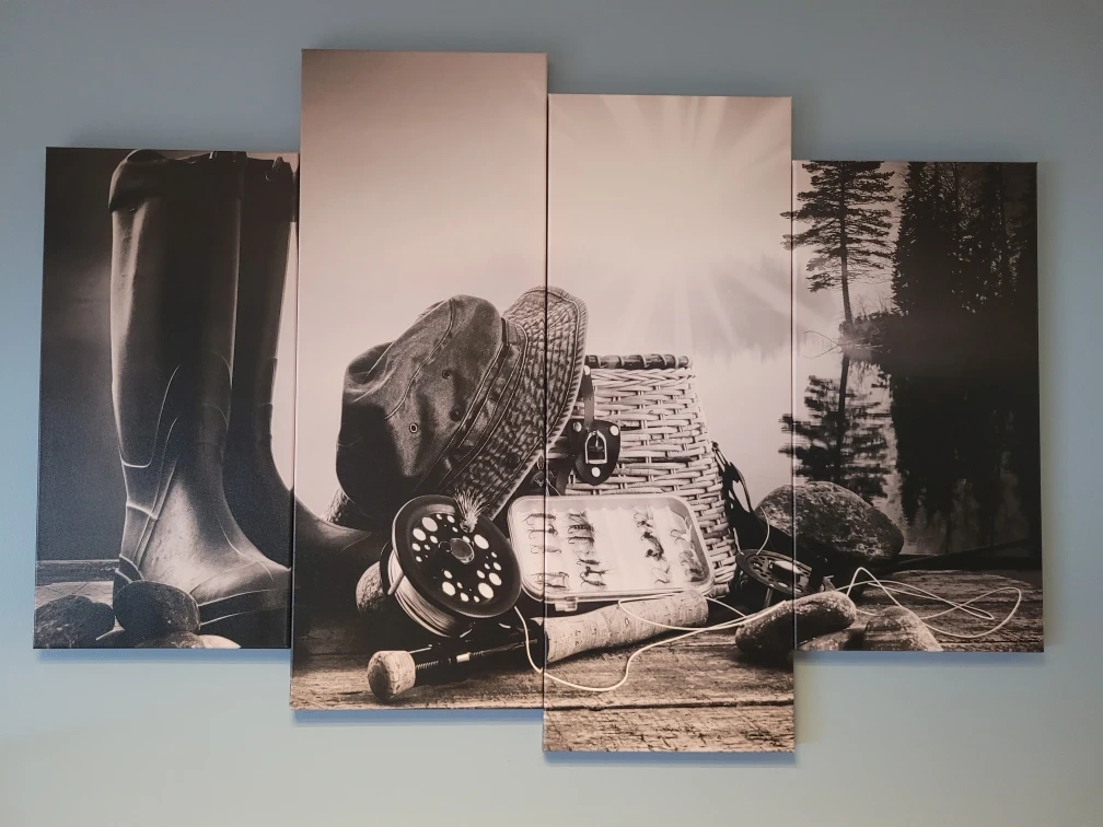 Selling a canvas print wall art piece featuring a fishing theme.