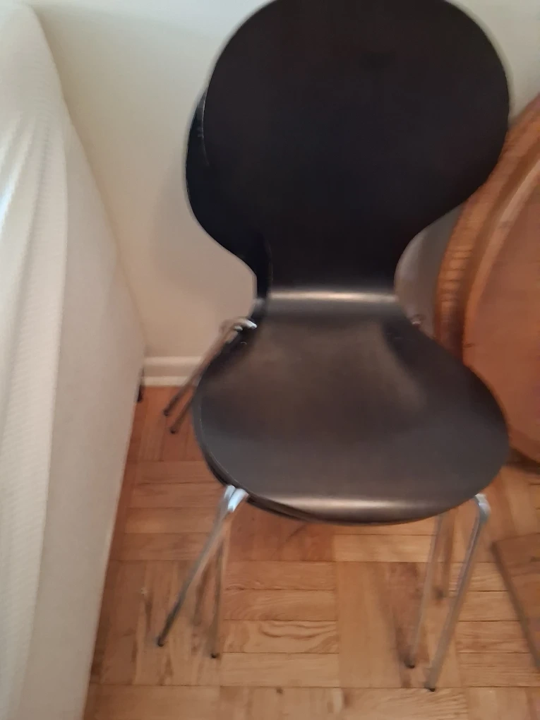 Selling a classic black Ant chair designed by Arne Jacobsen! This chair features a sleek, minimalist design with a molded plywood seat and chrome legs. It's perfect for adding a touch of mid-century modern style to any room
