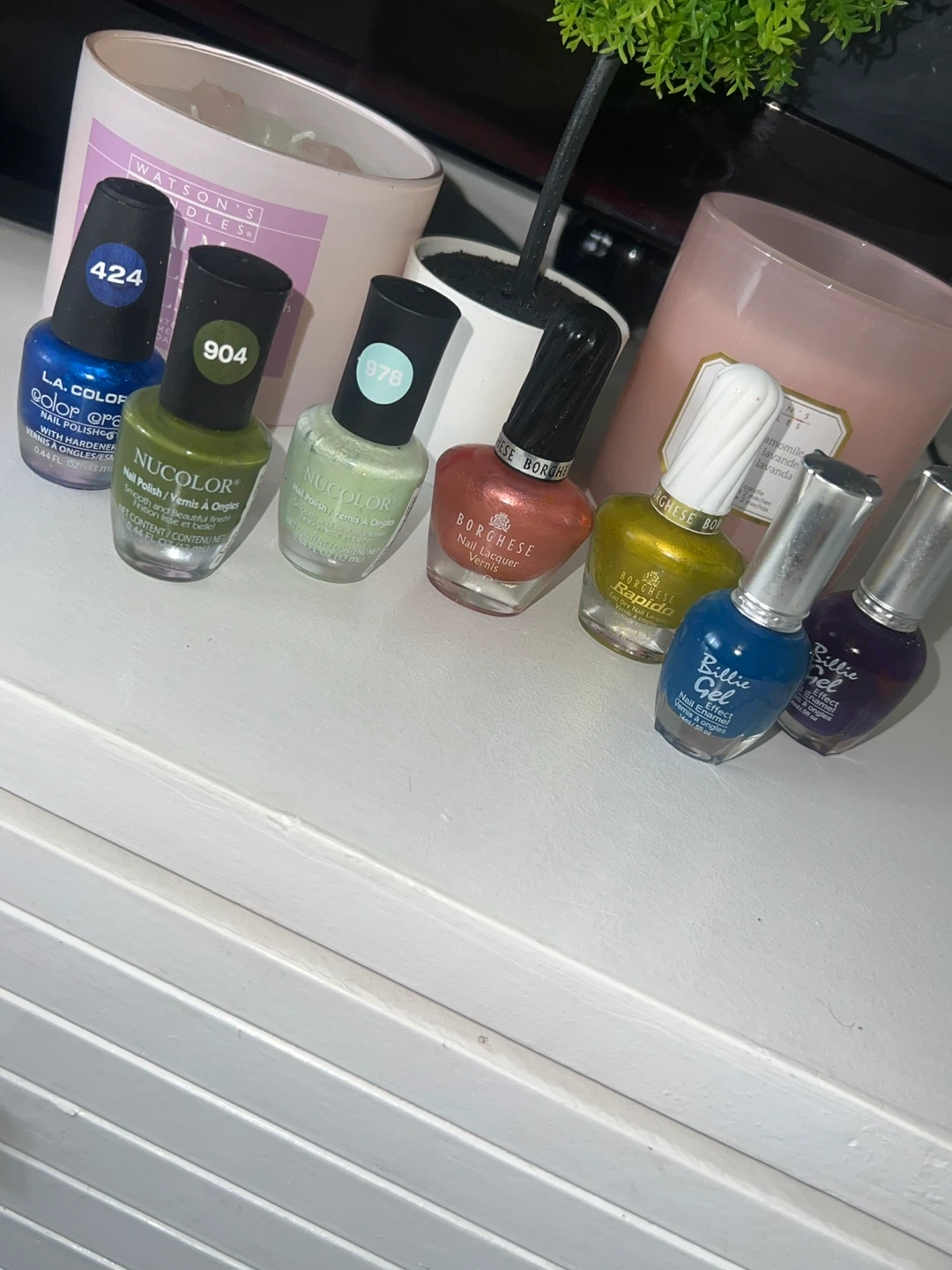 Selling a selection of nail polishes from various brands! You'll find colours from L.A. Color, NuColor, Borghese, and Billie Gel. Perfect for experimenting with different shades and finishes!