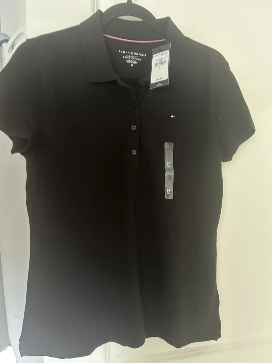 I'm selling a brand new Ladies Tommy Hilfiger black polo shirt in size medium! It's a classic fit and still has the tags on. Originally bought for $46.99