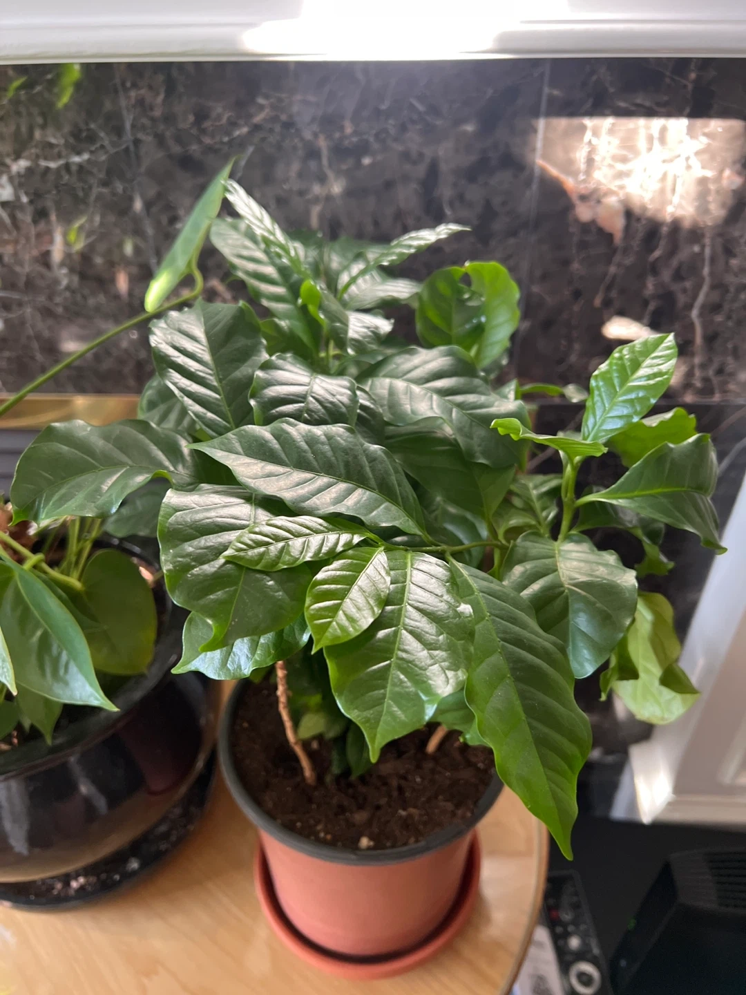 I'm selling 3 beautiful anthurium plants, perfect for adding a pop of colour to your home! It has vibrant red flowers and lush green leaves. Each plant comes in a decorative pot. I also have a coffee plant for sale. All plants are healthy and well-cared for!