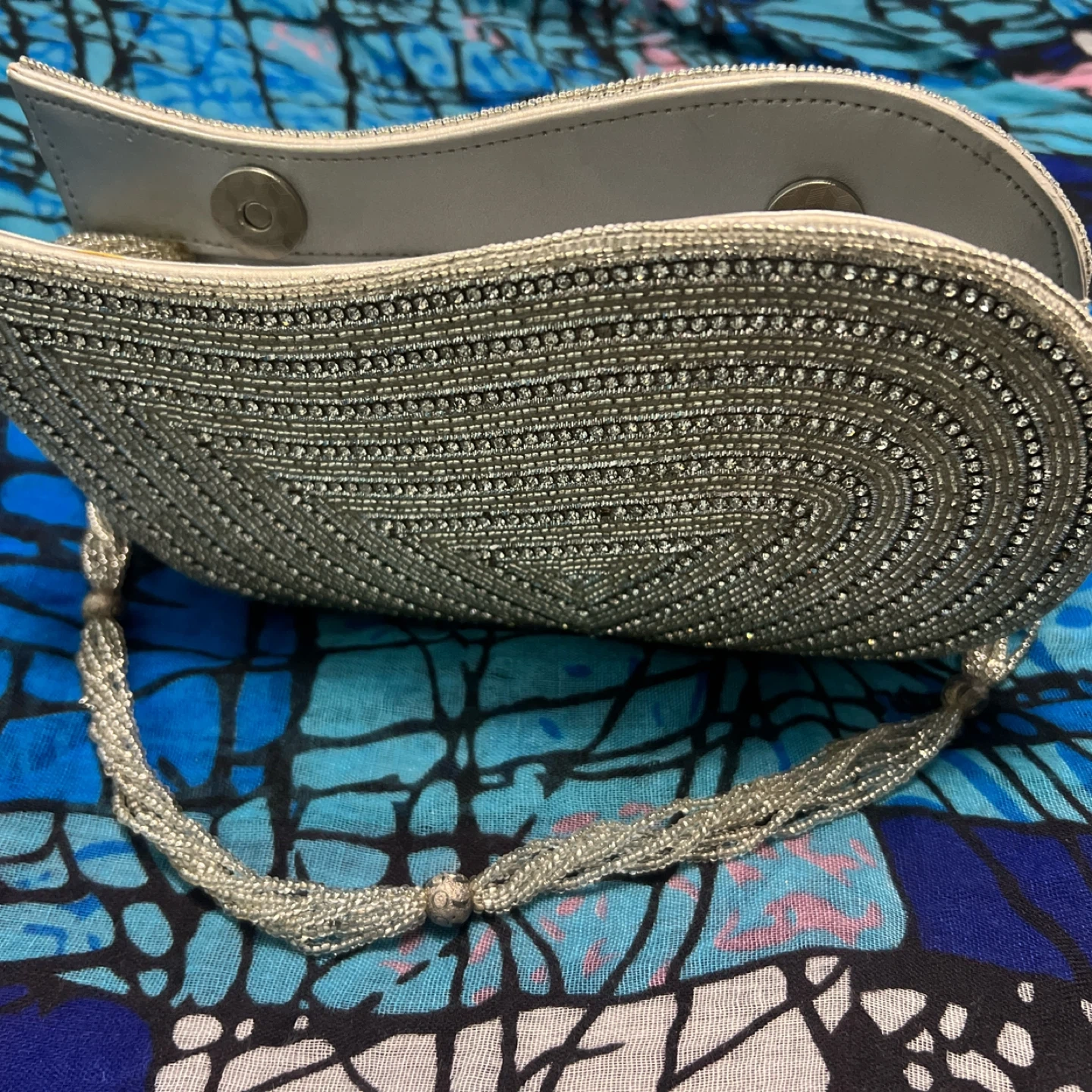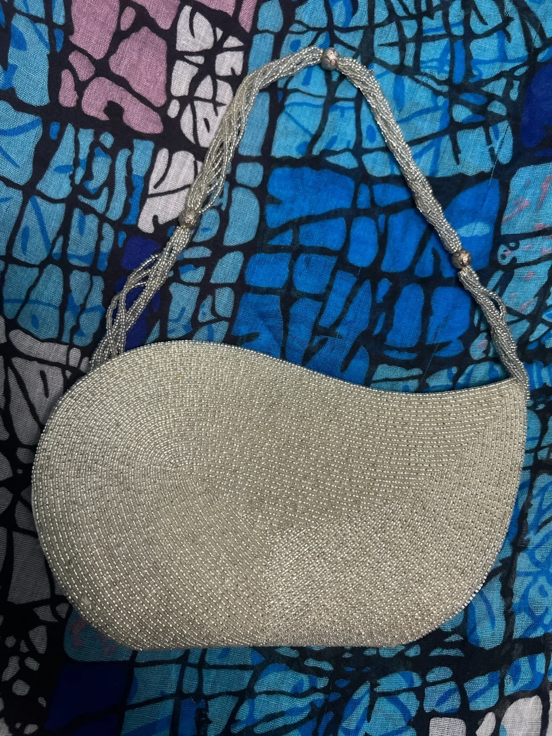 This is a beautiful silver beaded evening bag. It's perfect for a night out or a special occasion. The bag is in great condition and ready to be enjoyed!