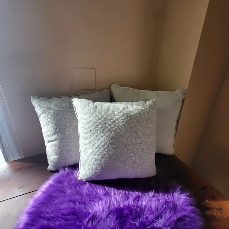 Selling a set of three grey throw pillows.