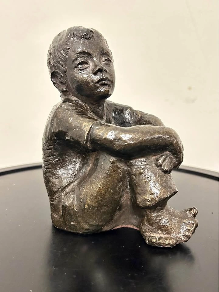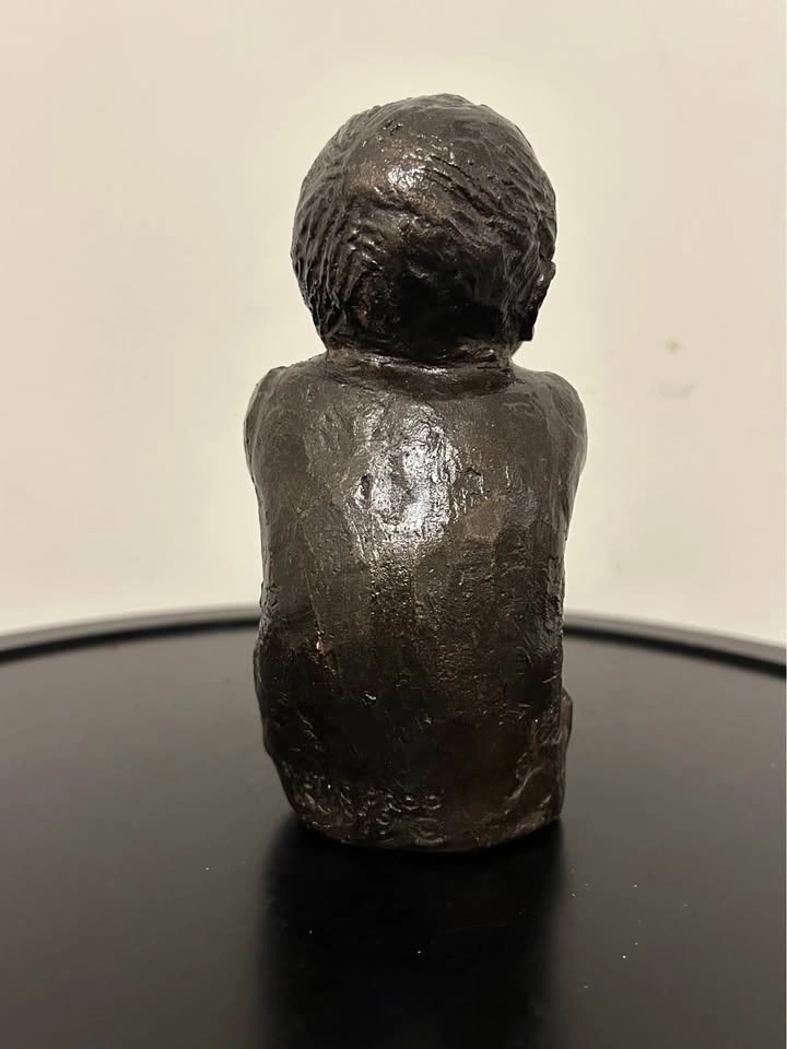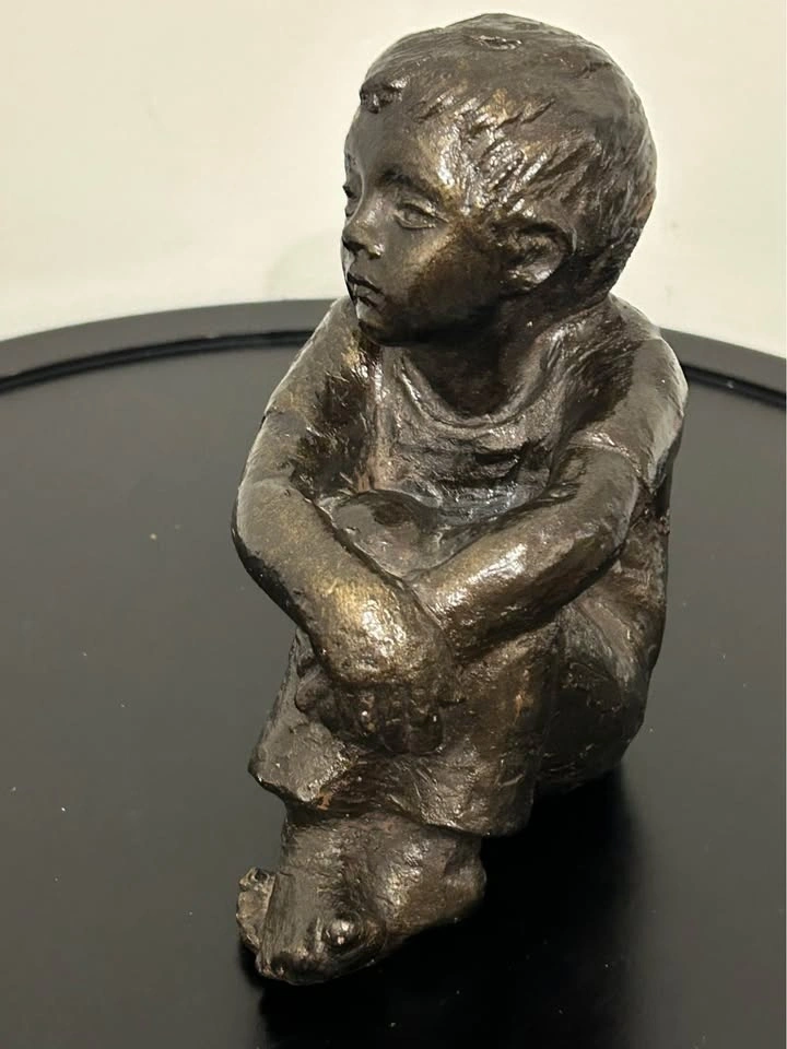A charming vintage 1979 Austin Productions sculpture, featuring a seated boy in a thoughtful pose. Finished in a classic bronze-tone patina, this piece beautifully captures the expressive, handcrafted style the company is known for.