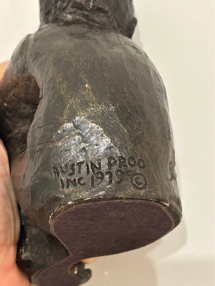 A wonderful addition for collectors of Austin Productions, mid-century style decor, or anyone who appreciates emotional figurative art. Looks great on shelves, desks, home libraries, or as part of a curated art vignette.