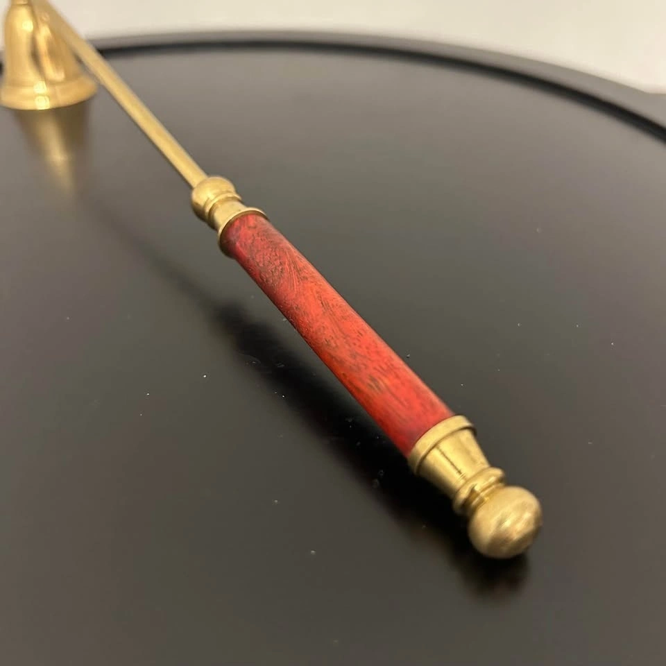 Beautiful vintage brass candle snuffer featuring a turned wooden handle and classic bell-shaped extinguisher. A timeless decorative and functional piece for candles, home altar setups, cozy interiors, and vintage-inspired decor.
