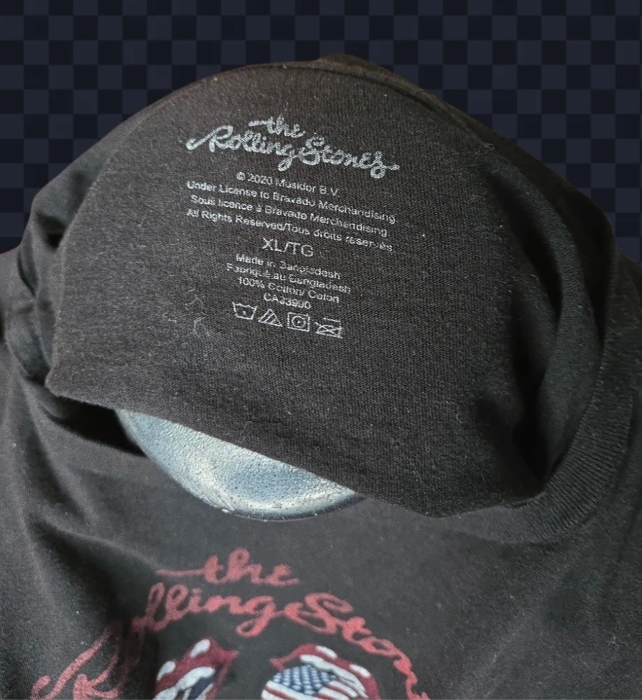 Selling a Rolling Stones t-shirt in size XL. The shirt is black and made of 100% cotton. It features a graphic print of the Rolling Stones logo with various flags. The shirt is in good condition and ready for a new owner!