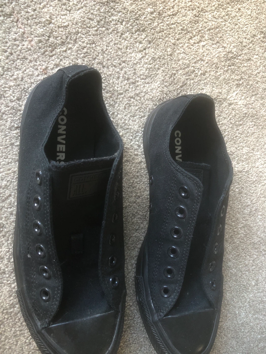 Selling a pair of black Converse All Star slip-on shoes! They're in good condition and perfect for casual wear. No laces needed!