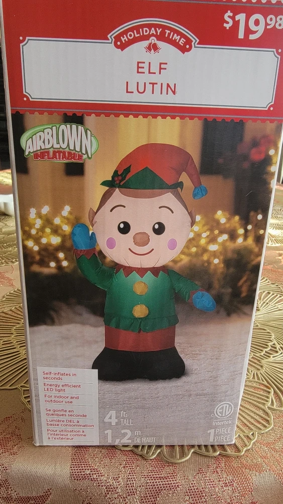 Selling a Holiday Time Elf inflatable, stands 4 ft tall. It's new in the box and ready to bring some holiday cheer! Originally bought for $19.98