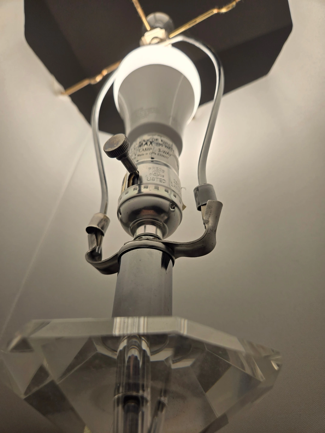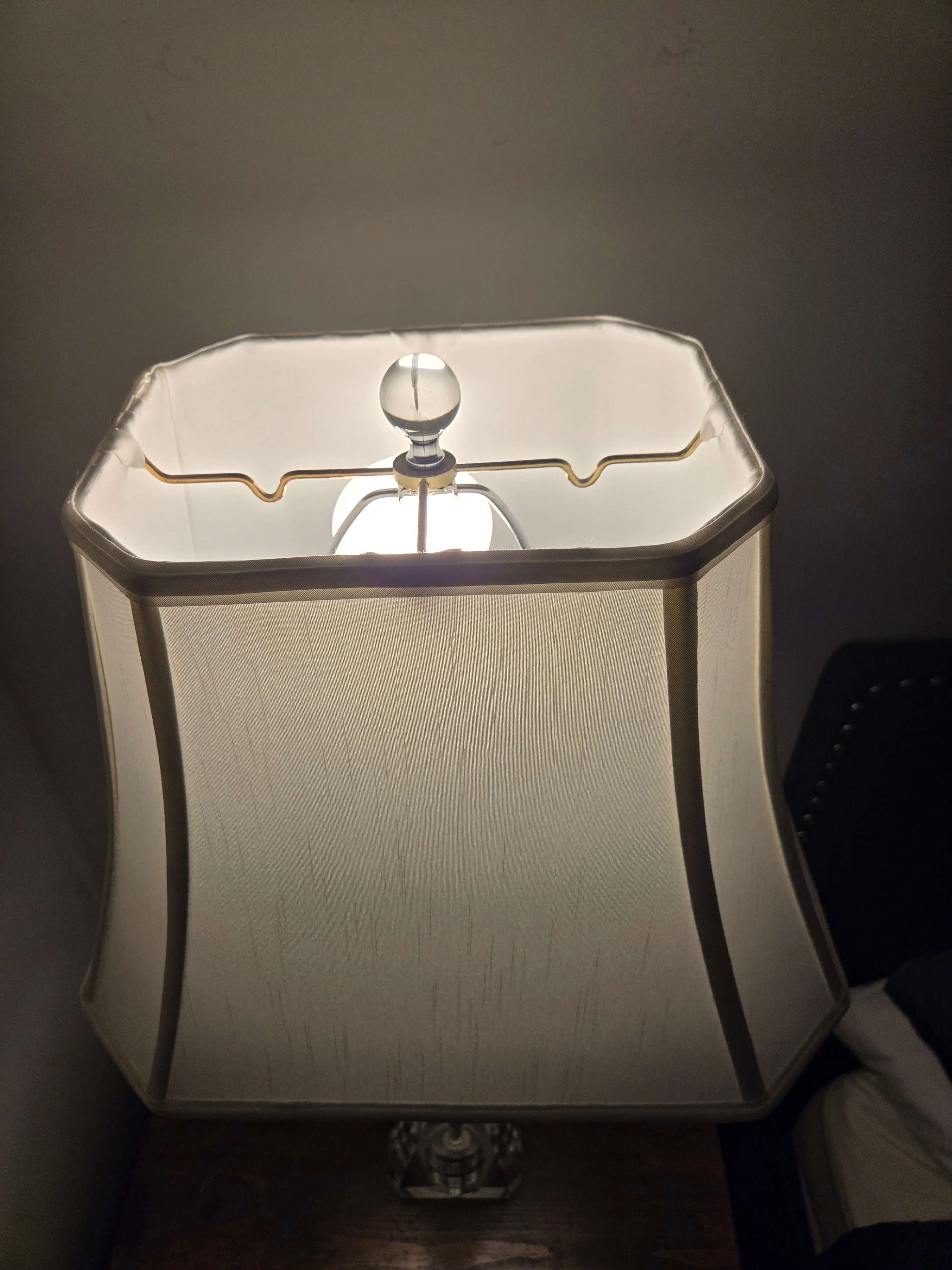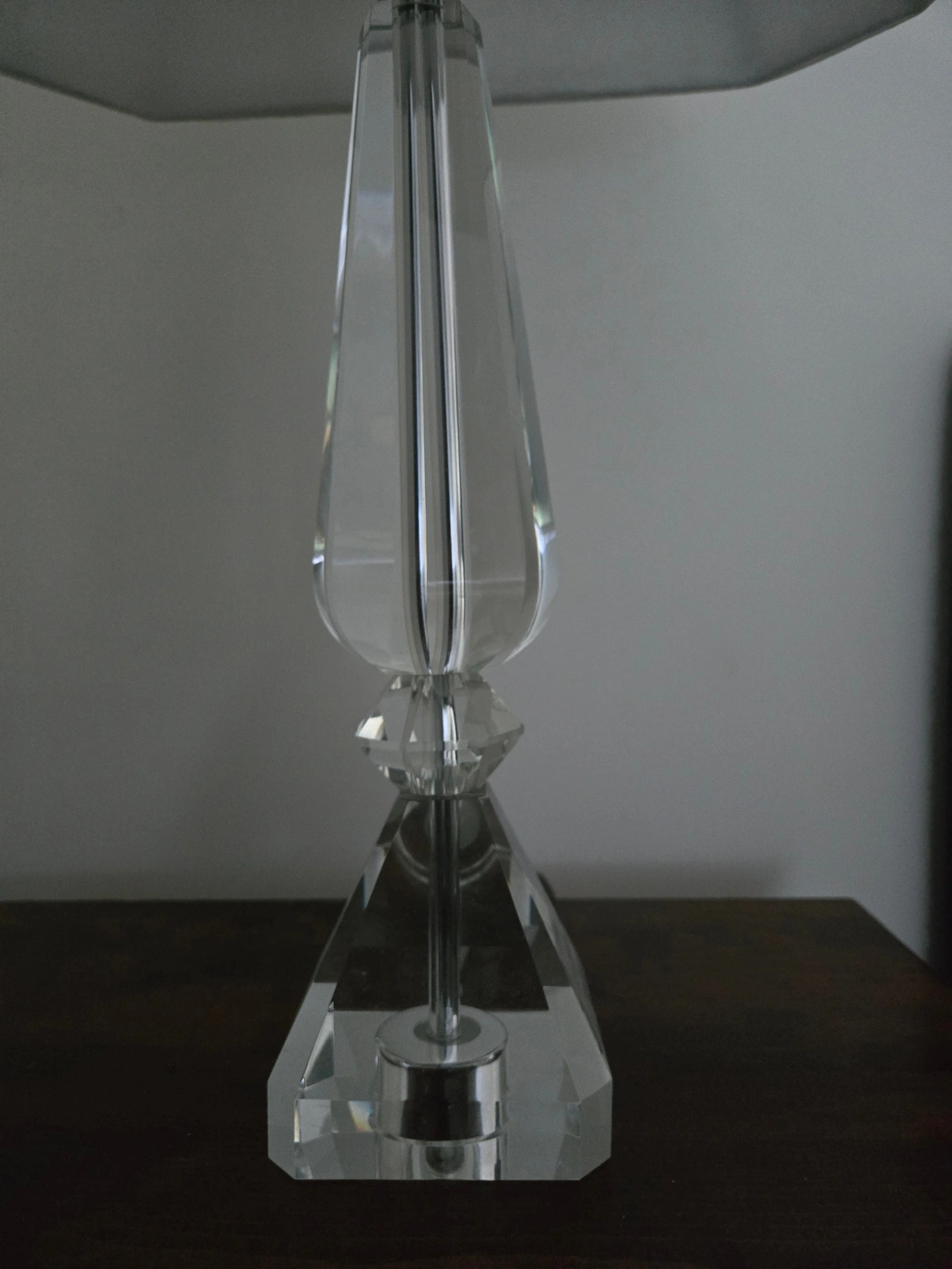 Selling a set of two glass-based bedside lamps with white fabric shades. Twist light switches give them a cool vintage vibe. Ideal for adding style and ambient lighting to any room.