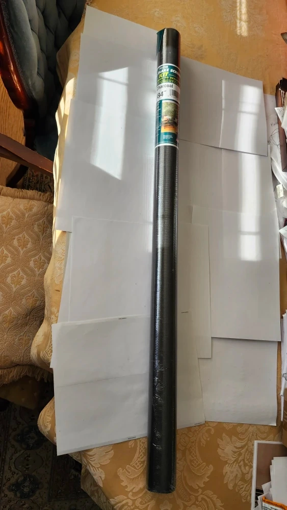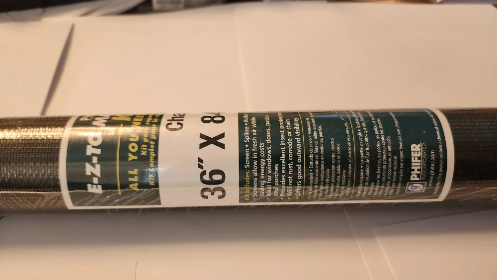 I'm selling a roll of Phifer E-Z-Tack charcoal screen. It's 36 inches by 84 inches. This kit includes the screen, spline, and roller. It's designed to allow fresh air while saving energy costs and providing excellent insect protection. It's also rust and corrosion resistant and offers good outward visibility!