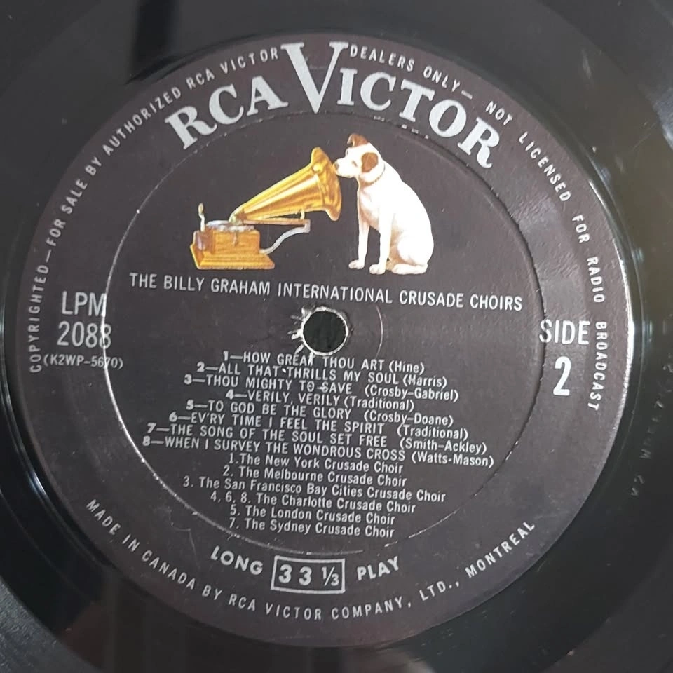 Billy Graham International Crusade Choirs vinyl record LP Souvenir Album RCA Victor LPM - 2088. Record in "excellent condition" with no scratches. Looks almost "Mint" (see photos).