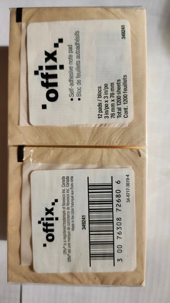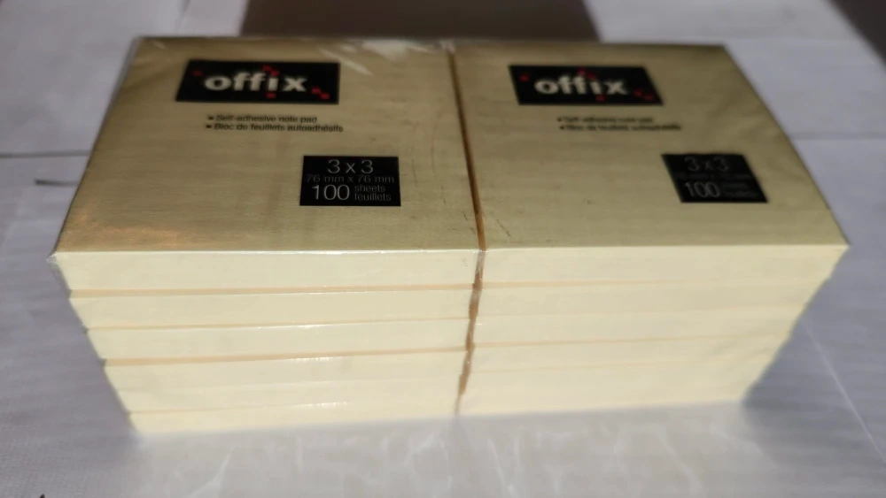 Selling a set of Offix self-adhesive note pads. There are 12 pads in total, each measuring 3x3 inches (76 mm x 76 mm). Each pad has 100 sheets, so you'll have 1200 sheets in all!