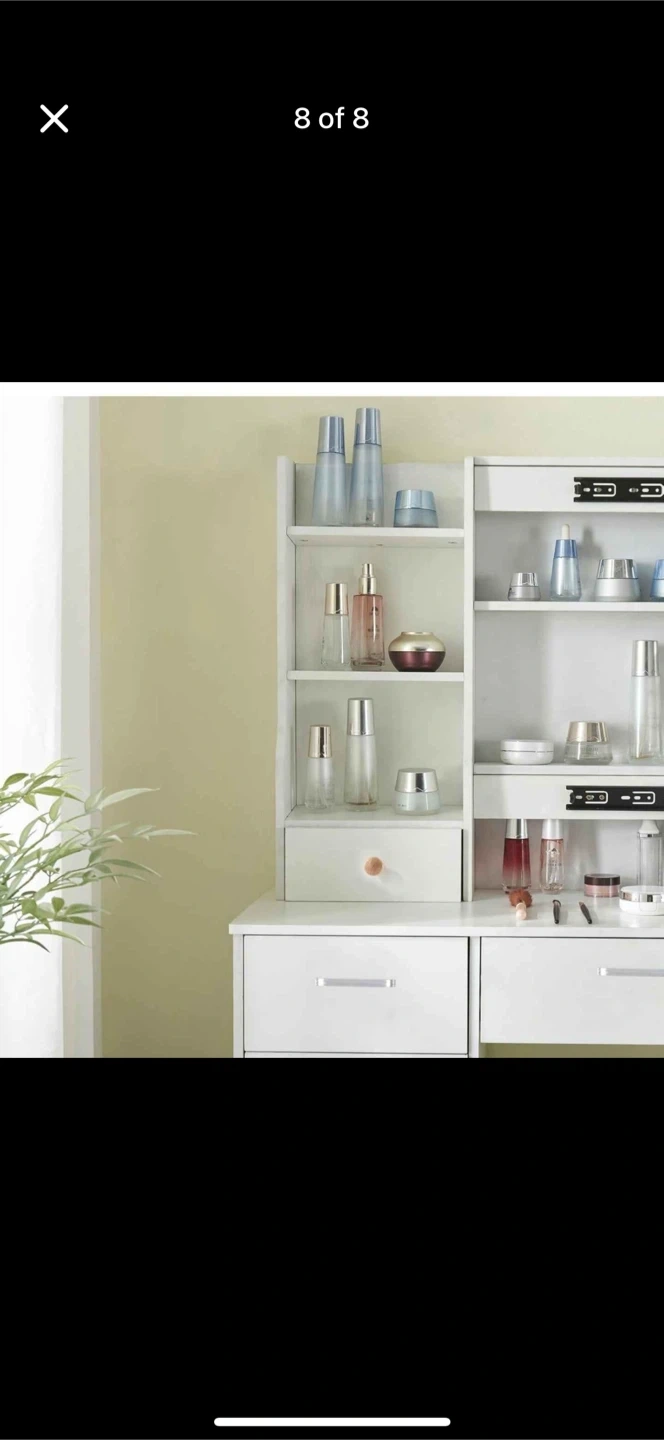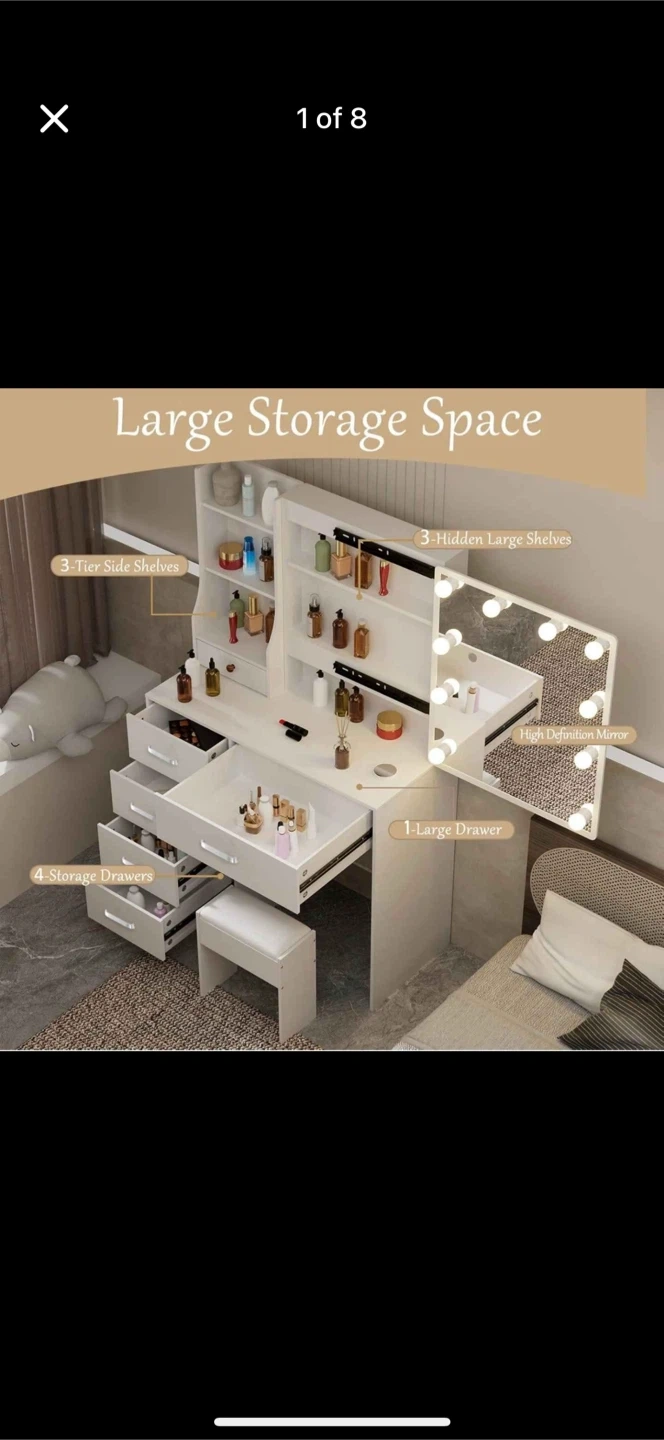 Looking to upgrade your getting-ready space? This vanity table set comes with a lighted mirror and plenty of storage. The white finish will brighten up any room! It also includes a matching stool for comfortable seating