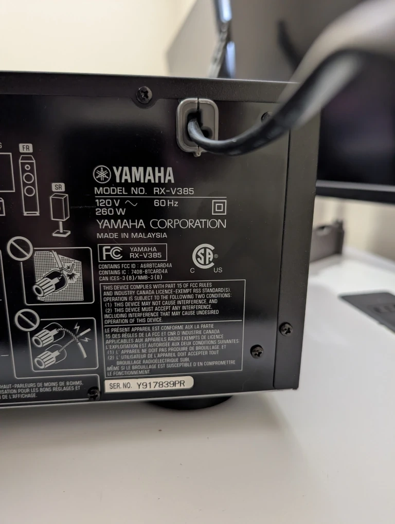 Selling a Yamaha RX-V385 Natural Sound AV Receiver. It's in great condition and ready to enhance your home theatre experience. Comes with a remote control for easy operation!