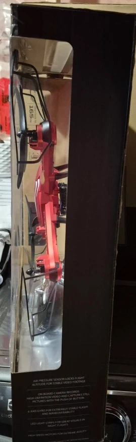 Selling a used Propel Maximum X15-WiFi Hybrid Stunt Drone with HD Camera and Streaming Video! Special features include: - Air pressure sensor locks flight altitude for stable video footage - On-board camera records high-definition video and captures still pictures with the push of a button - 6 Axis Gyro for extremely stable flight and maneuverability - LED light strips for great visuals in night flights - Push button 360° aerial stunts - Wide range digital radio allows flight range up to 400 feet Recommended for ages 14+