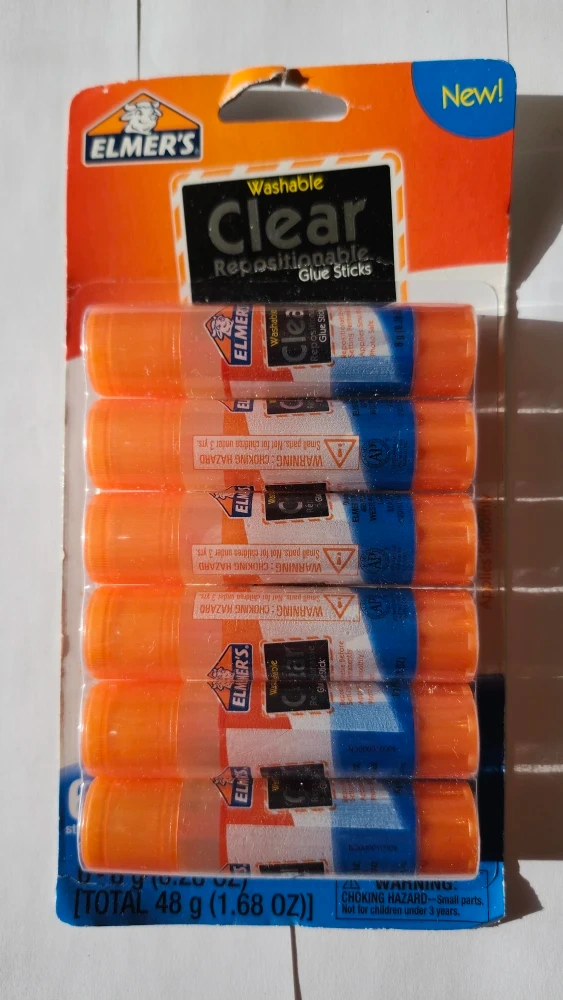 Selling a brand new pack of Elmer's Washable Clear Glue Sticks! This pack contains 6 sticks, perfect for school projects, crafts, or just keeping around the house. The glue is acid-free and photo-safe, making it great for a variety of uses. They're also washable, so cleanup is a breeze!