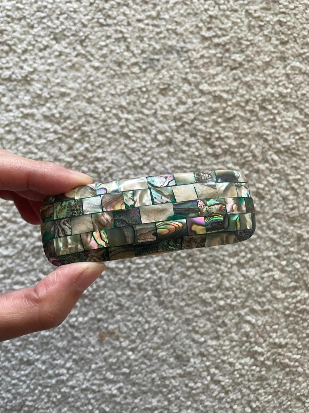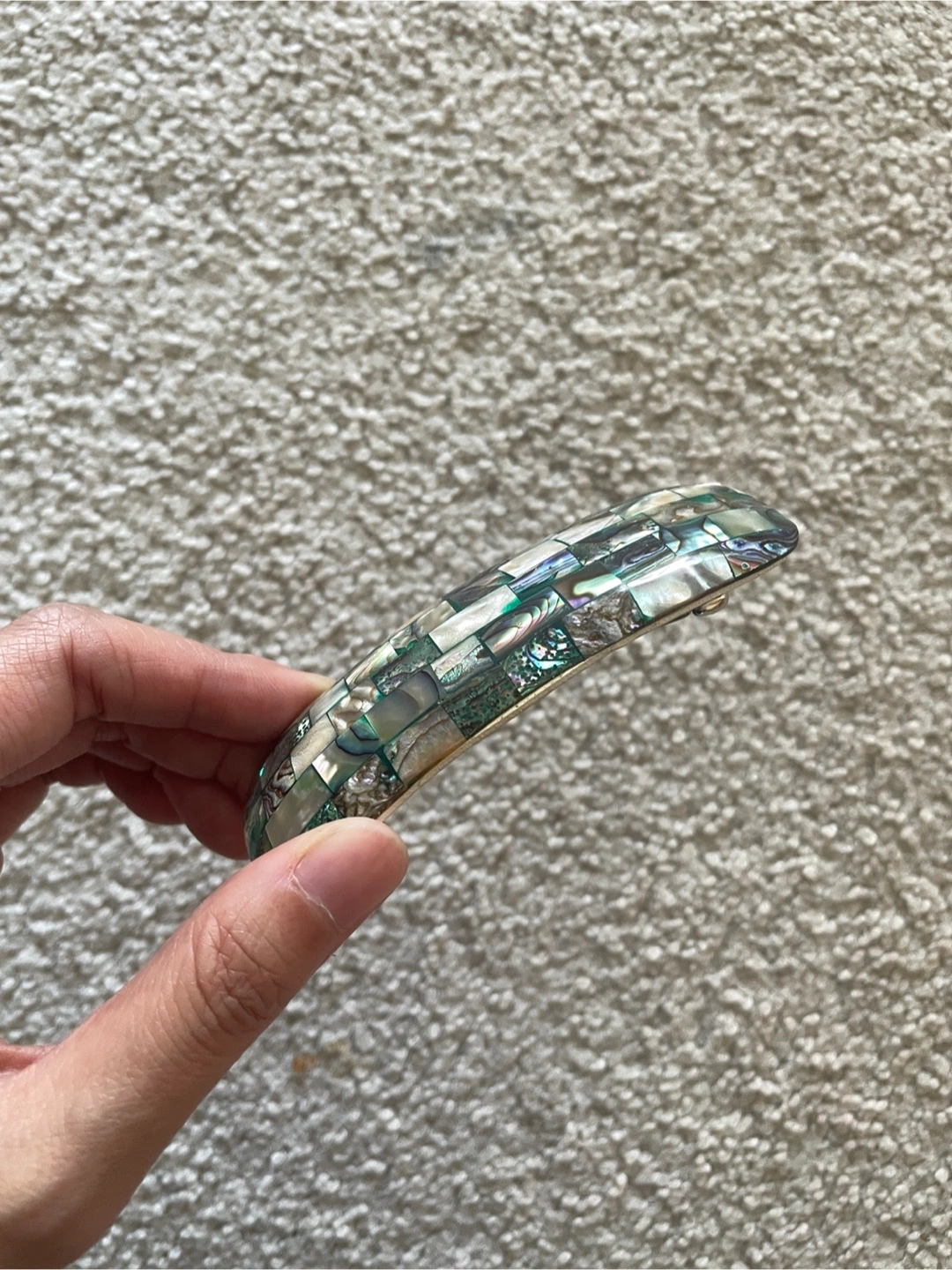 This is a beautiful barrette style hair clip with an abalone shell design. It's in great condition and ready to add a touch of elegance to your hairstyle!