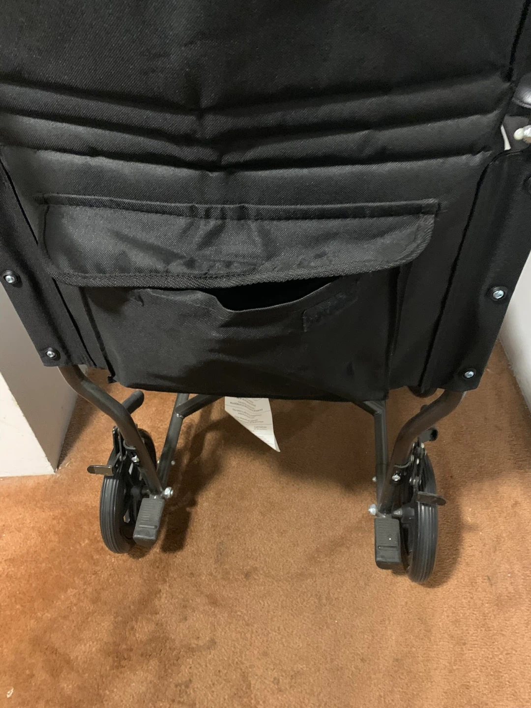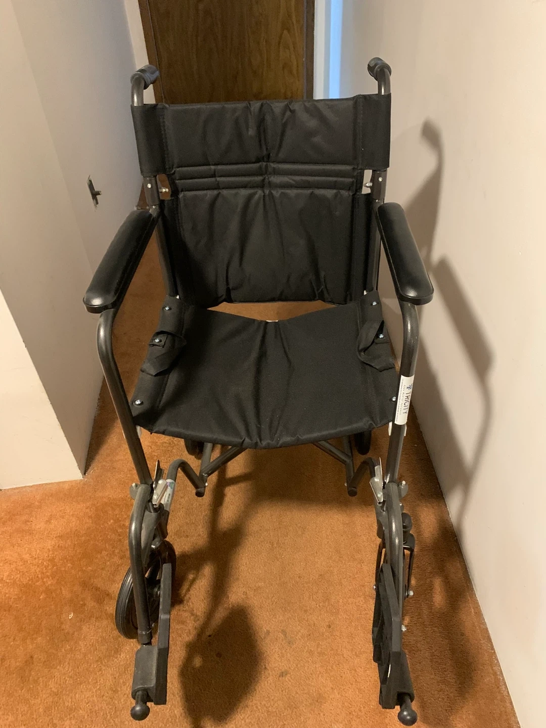 Selling a lightweight transport wheelchair in black. It's in great condition and ready to use. Perfect for getting around easily!