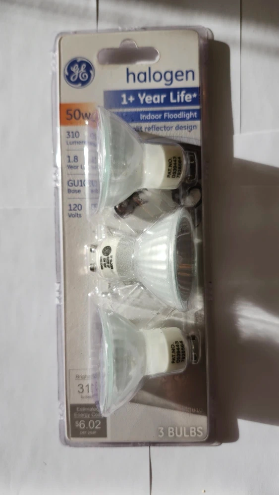 Selling a brand new pack of GE Halogen light bulbs! This pack includes 3 bulbs, each 50W. They are designed for indoor floodlight reflector design. Get yours today!