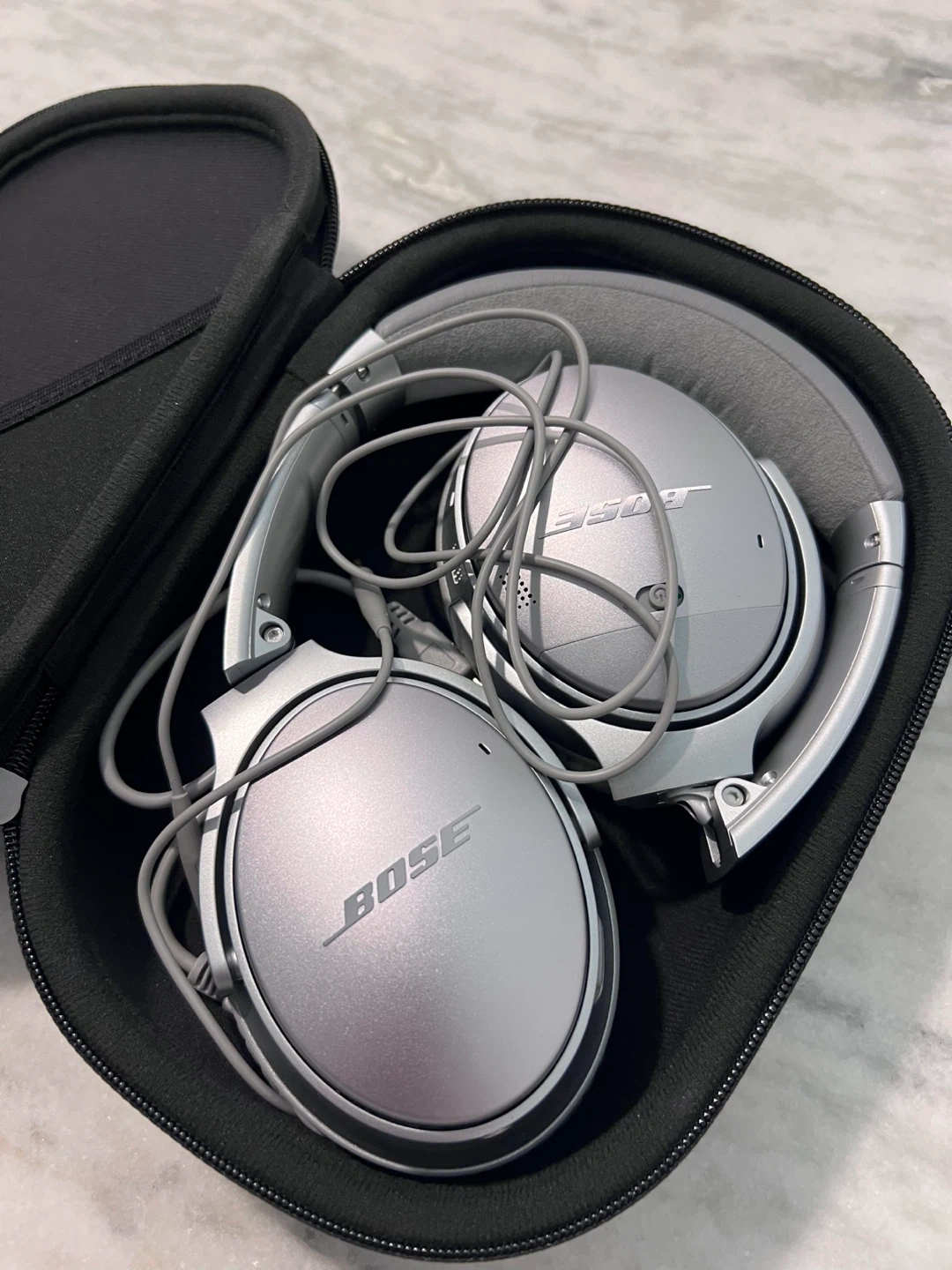 Selling a pair of Bose QuietComfort 25 headphones in silver. They come with the original carrying case for easy storage and protection. Great for travel or just enjoying your music in peace!