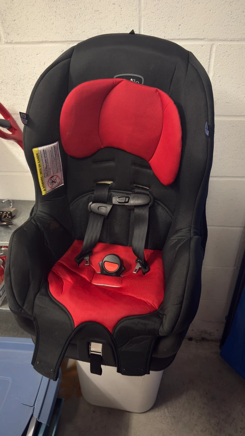 Selling an Evenflo car seat in good condition! It's rollover tested for safety and has a black and red colour scheme. Perfect for keeping your little one safe and secure on the road