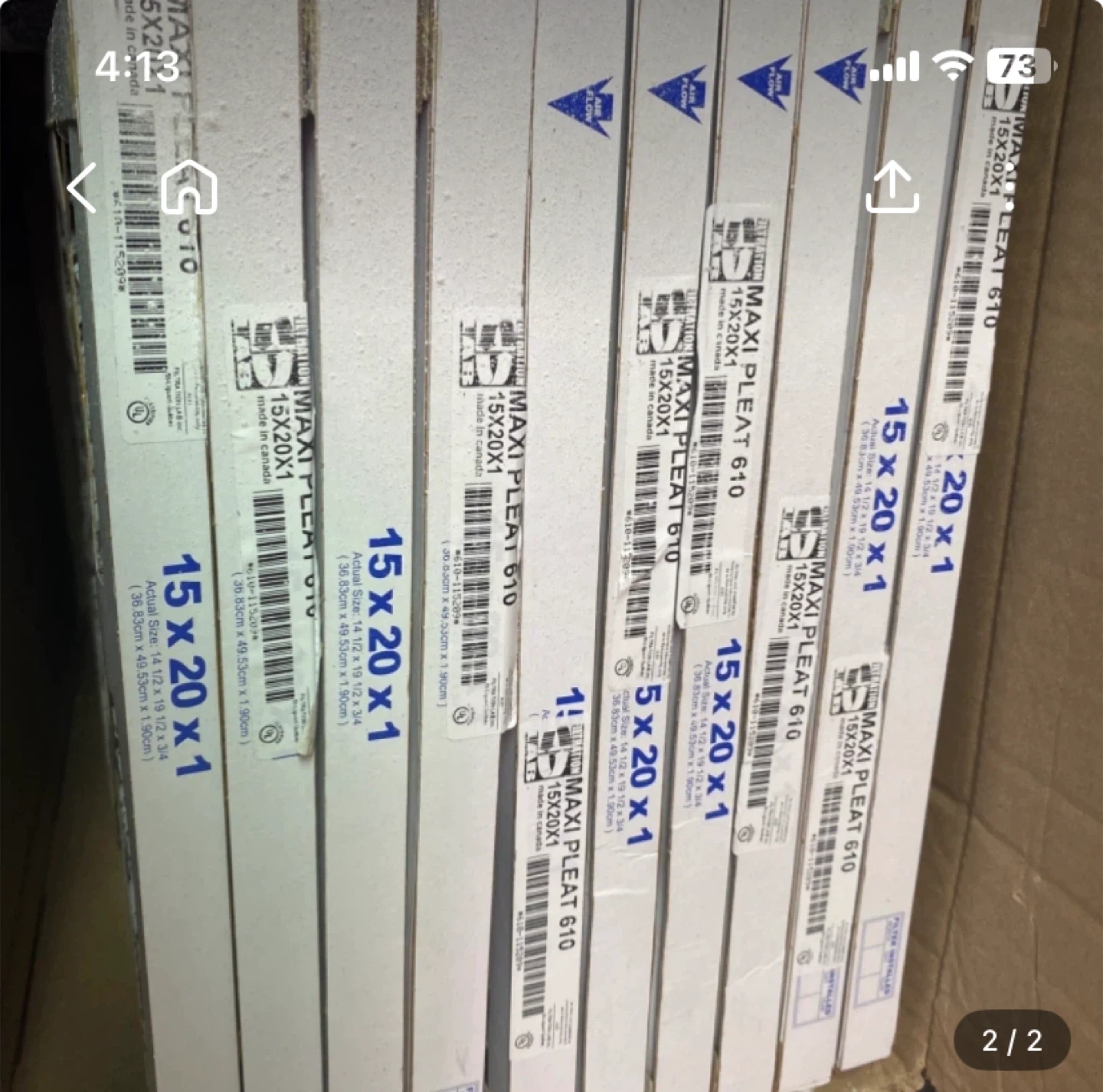 Buy & SellMaxi Pleat 610 Air Filter 15x20x1. 2 leftMaxi Pleat 610 Air Filter 15x20x1. 2 left$5Selling a Maxi Pleat 610 air filter. It's size 15x20x1. 2 leftConditionNewWHERE TO MEETCheck LocationView MapSELLERAndreaWallance Emerson34533 reviews0 chats·0 favorites·6 views