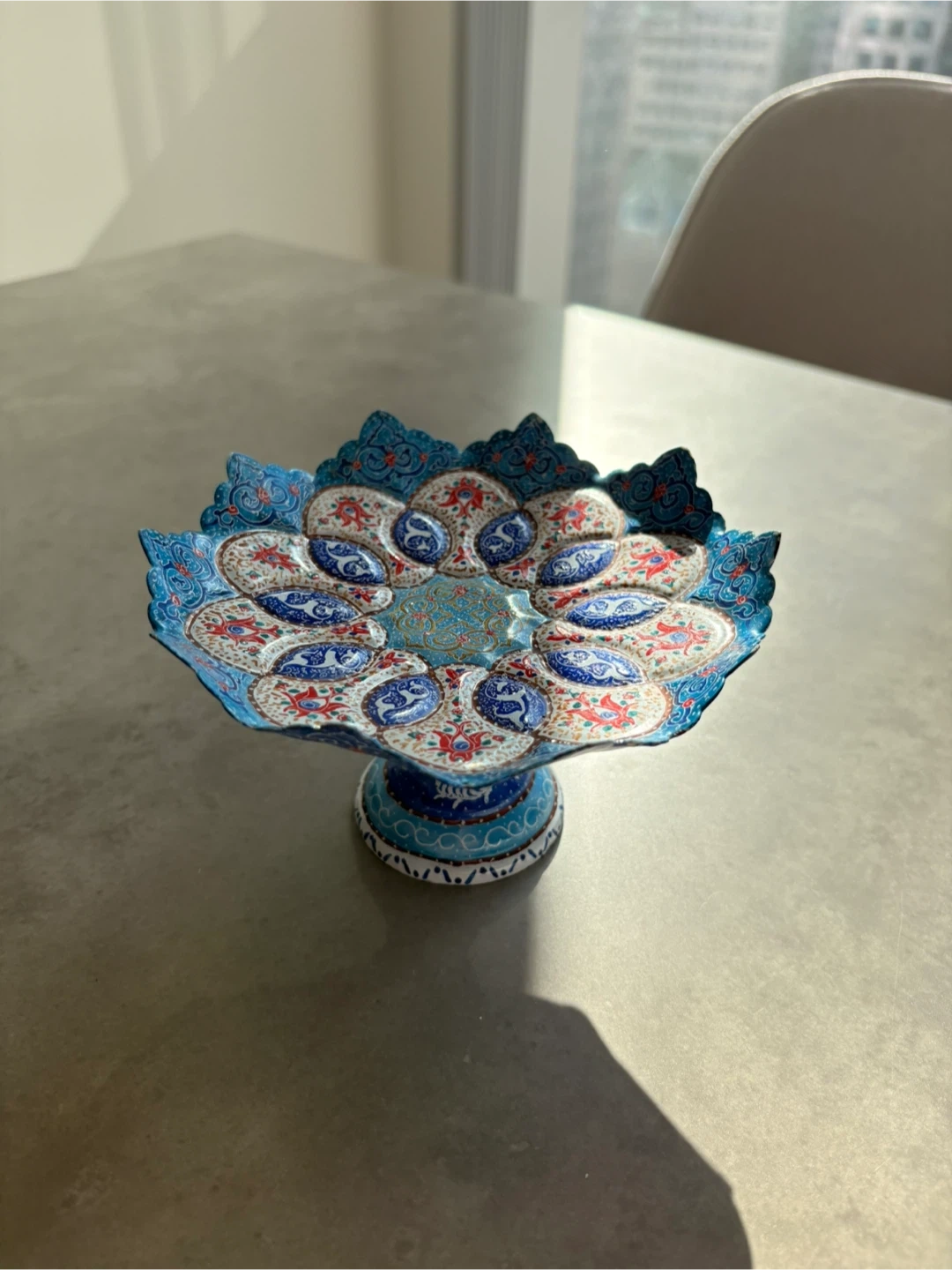 Persian-Style Hand-Painted Pedestal Bowl – DecorativeDish