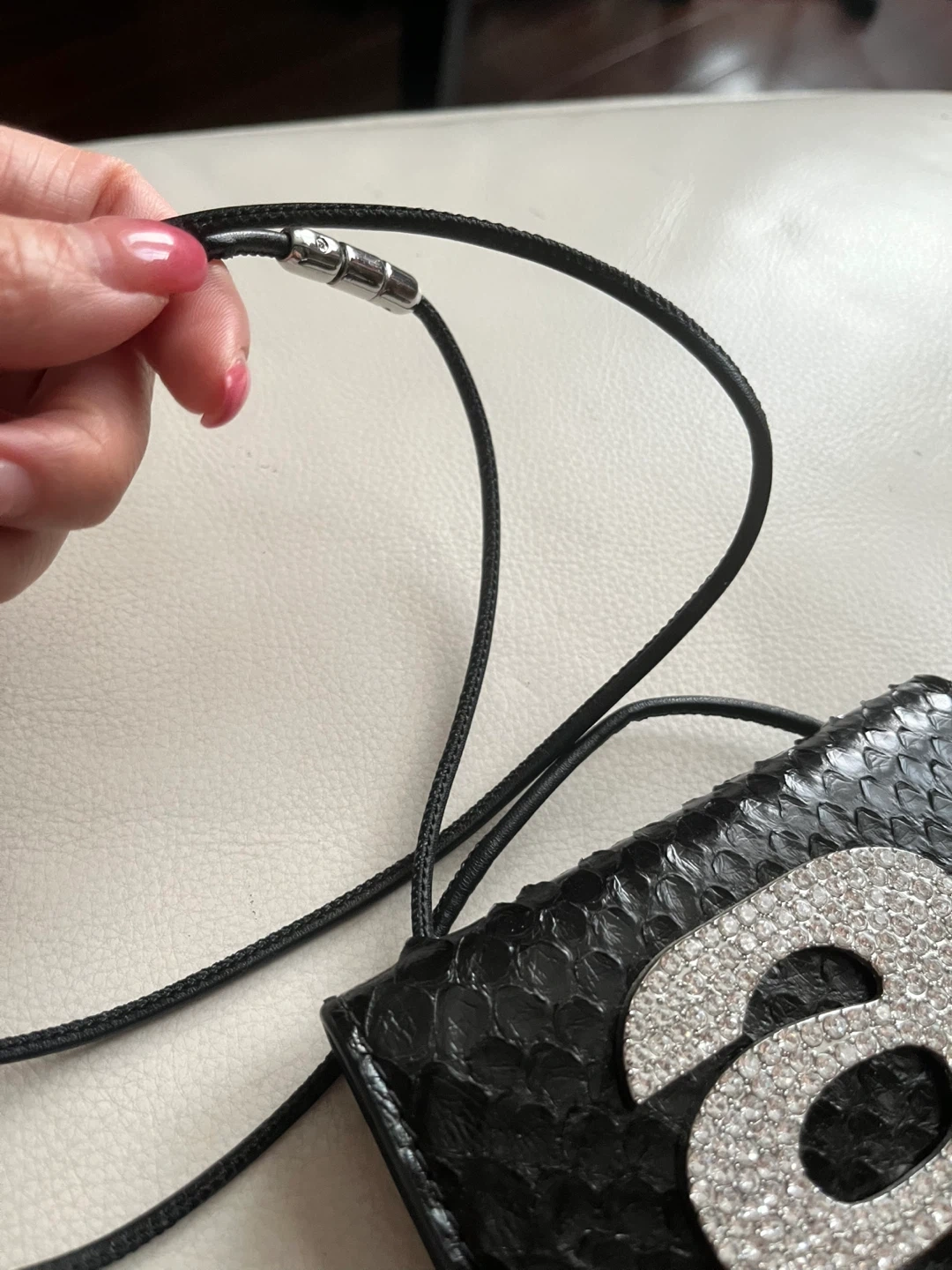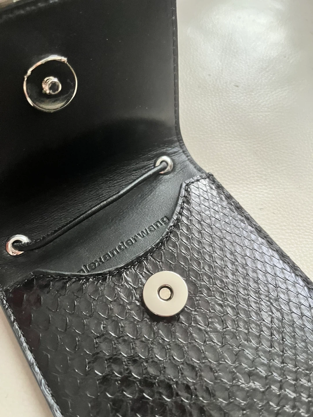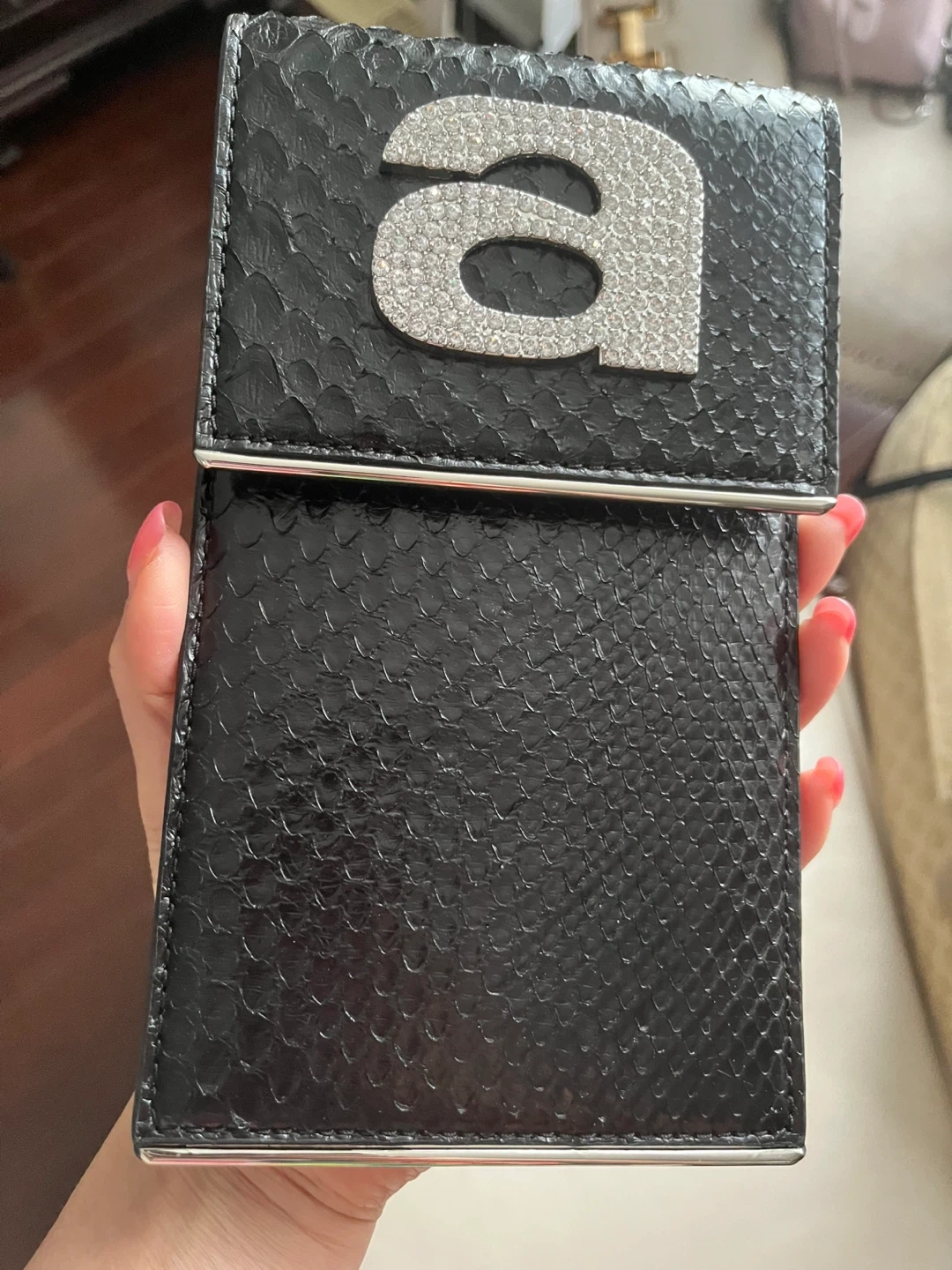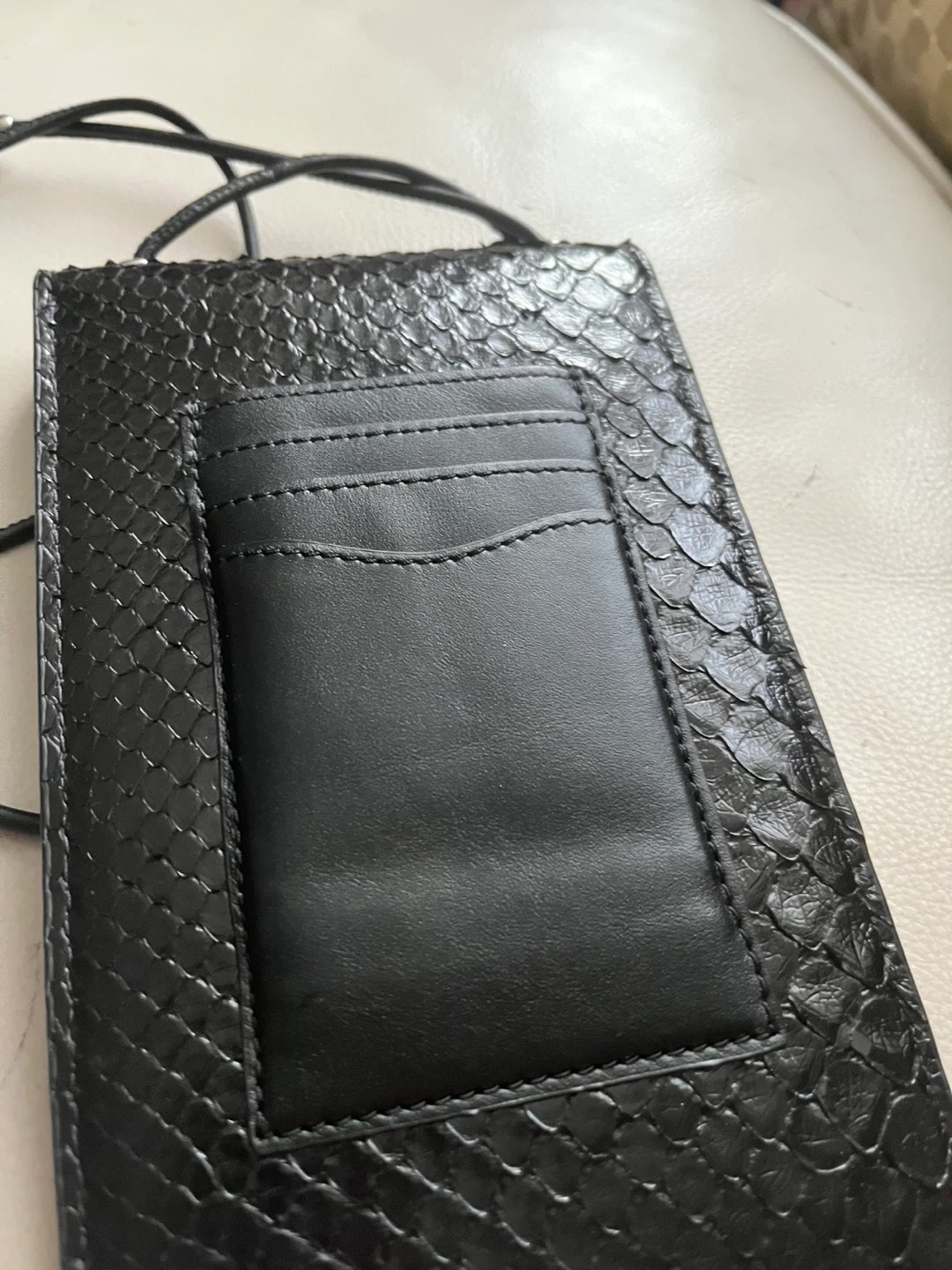 Selling a super cute phone pouch! It's black with a snake print and a sparkly letter 'A' on the front. Perfect for carrying your phone and a few cards when you don't want to bring a big bag