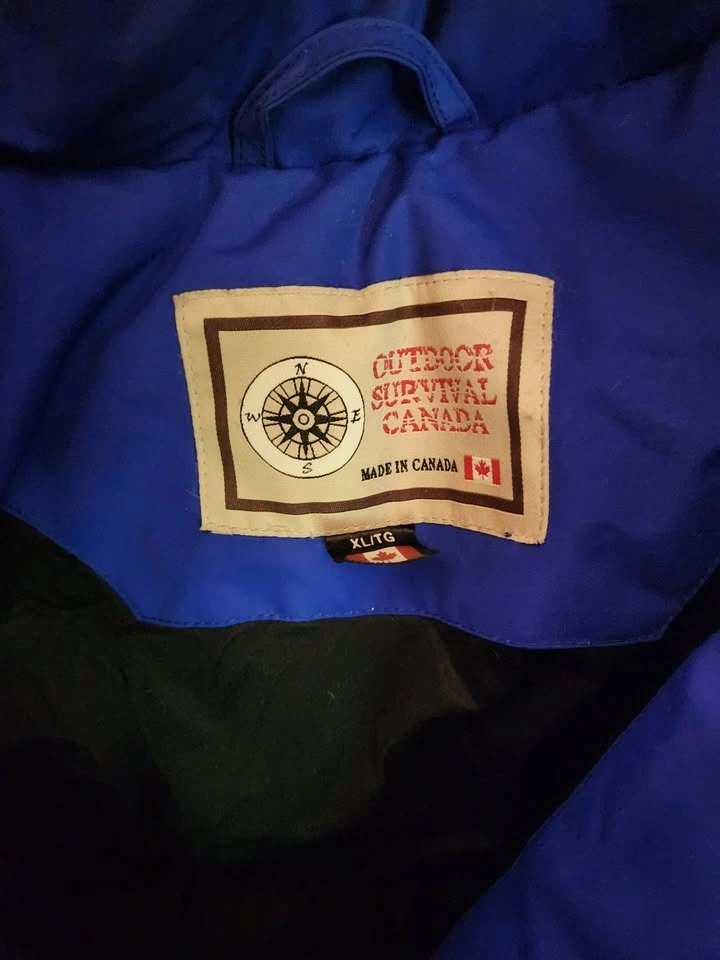 Outdoor Survival Canada Atka goose down jacket for sale (Unisex XL in blue). Asking $700 cash only. Barely worn. Meetup at St. Vital mall. No holds. Selling as is.