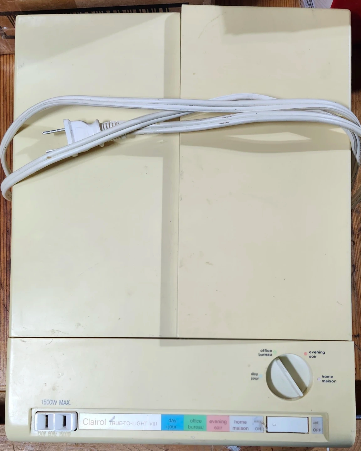 Clairol TRUE-TO-LIGHT VIII vanity mirror. It has settings for day, office, evening, and home lighting. Still works!