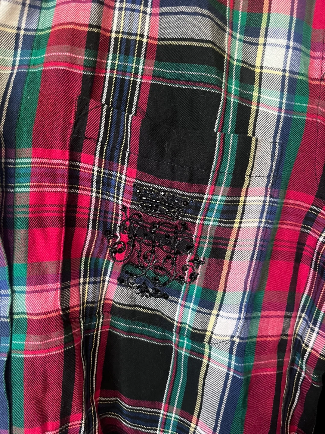 Ralph Lauren plaid shirt in a vibrant mix of red, green, and black! The shirt is made from 100% cotton. Perfect for adding a pop of colour to your wardrobe!