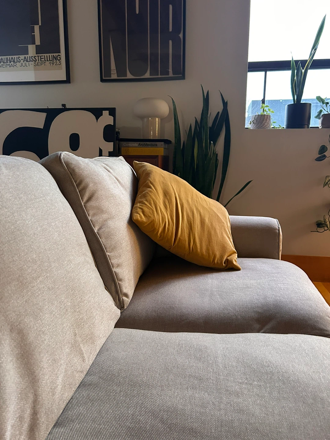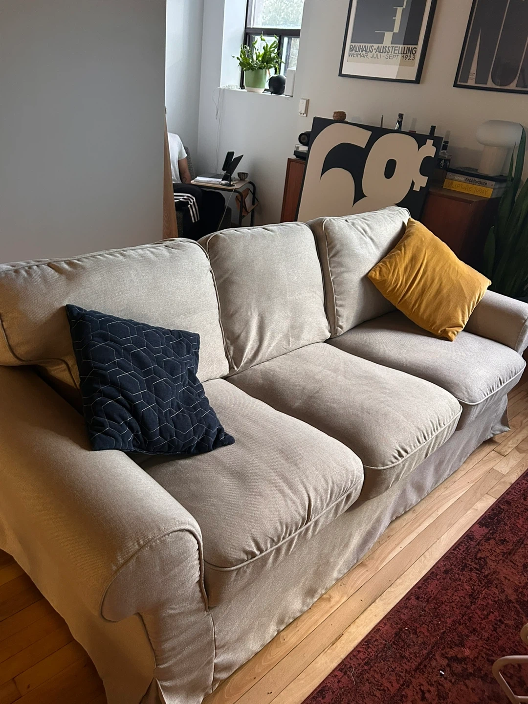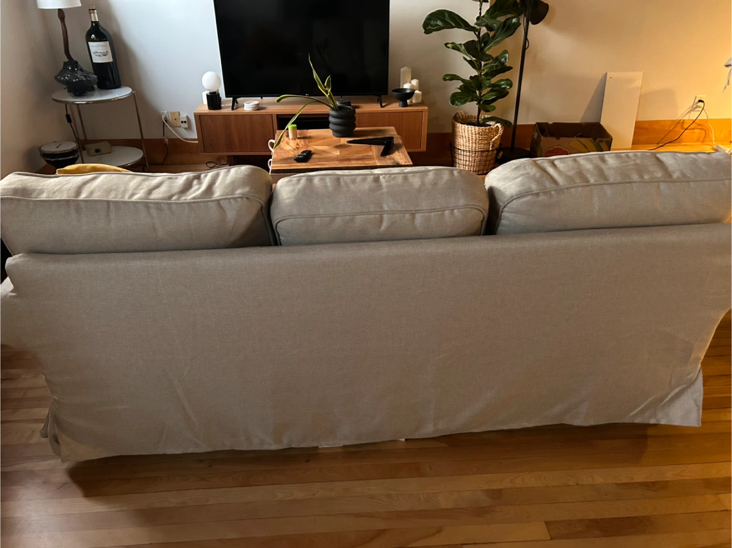 Selling an off-white sofa in excellent condition. Purchased it less than a year ago. Absolutely nothing wrong with it, it’s just not the right size for my new apartment. It's a comfortable three-seater that would be perfect for a living room or den. Cushions are in perfect condition. No stains or discolouration. The material is a soft, textured fabric.