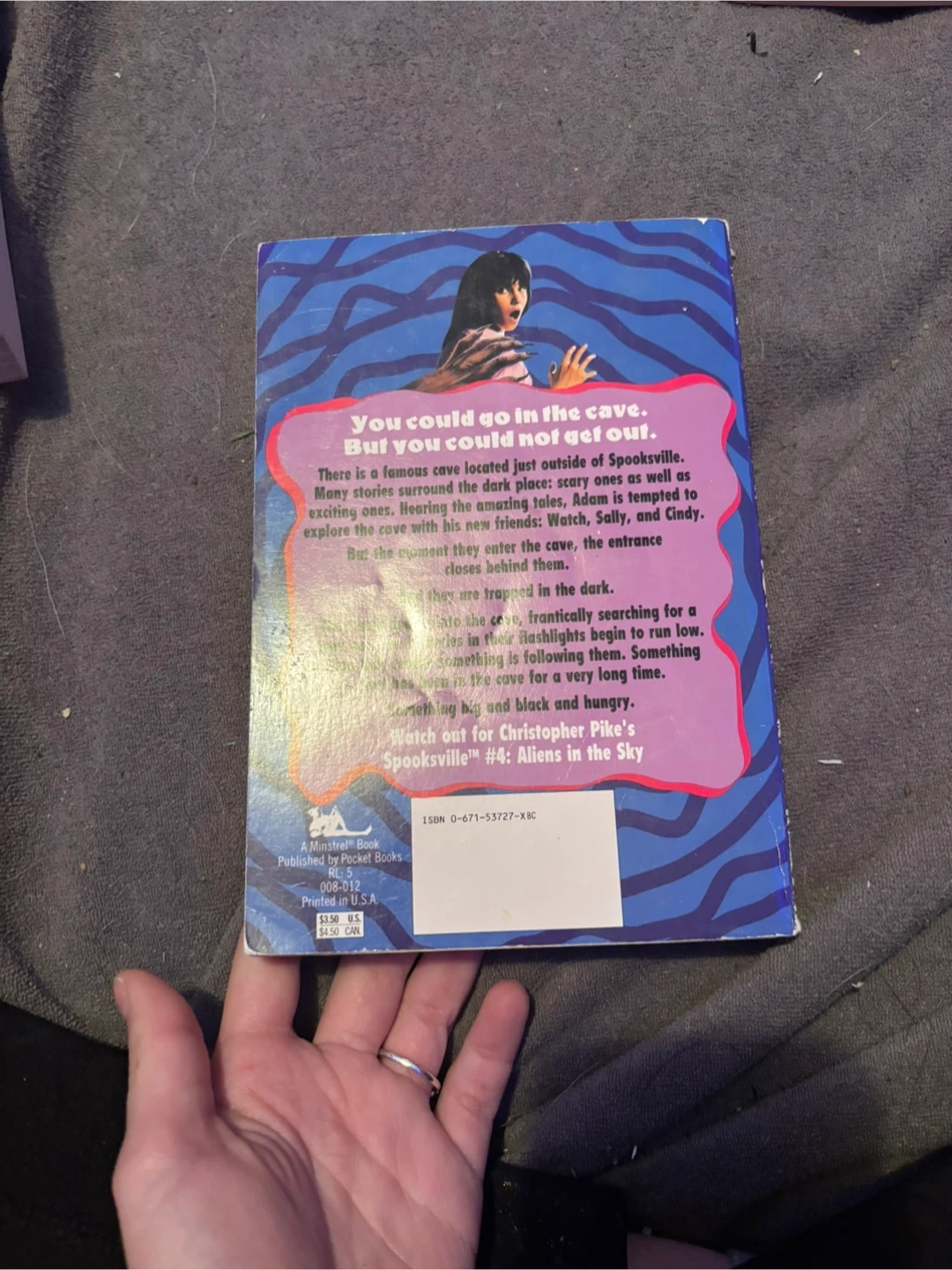 Selling a copy of Spooksville: The Haunted Cave by Christopher Pike! It's part of the Spooksville series and is a great read for anyone who enjoys a spooky story. Perfect for young adults!