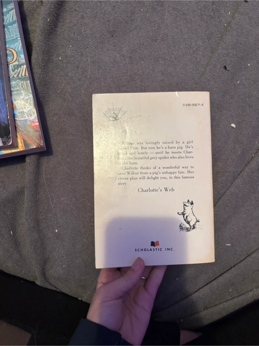 Selling a copy of Charlotte's Web by E.B. White. It's a classic story about friendship and adventure! A great read for kids and adults alike